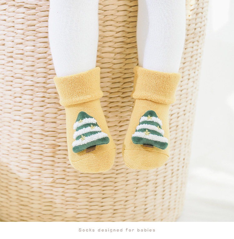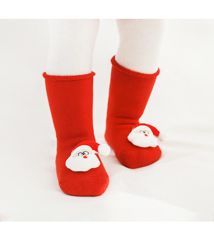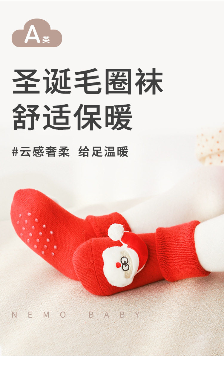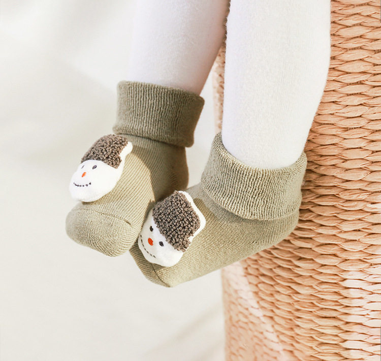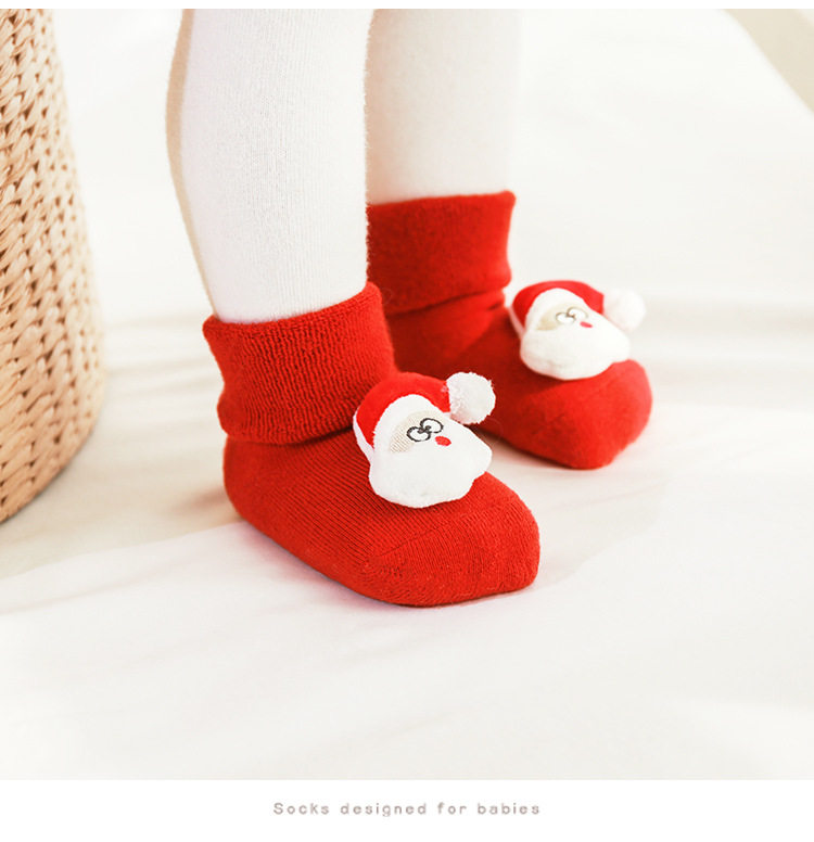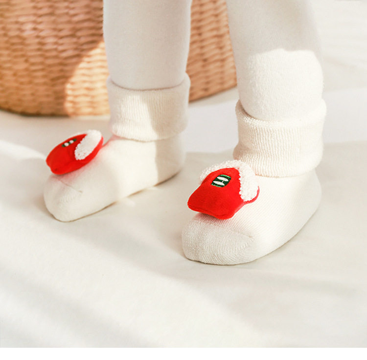 冬季新款毛圈加厚宝宝袜子点胶防滑婴儿地板袜儿童圣诞卡通公仔袜
