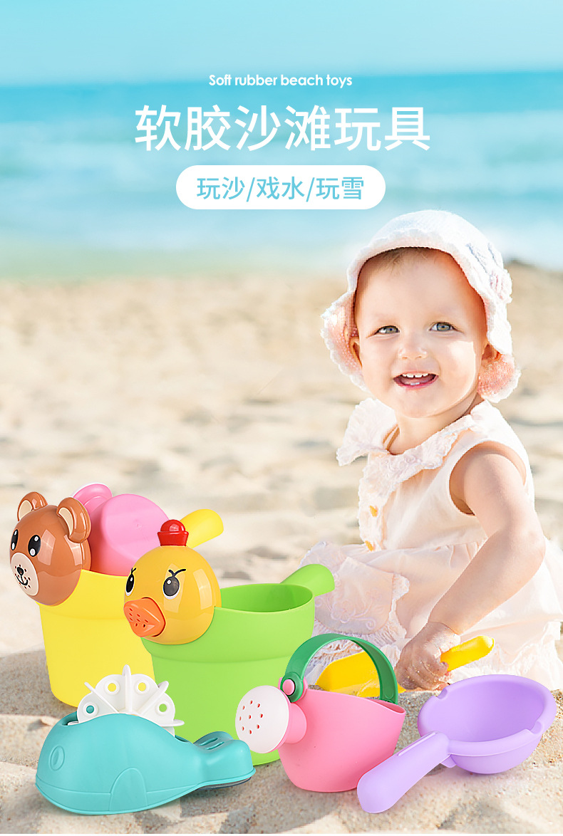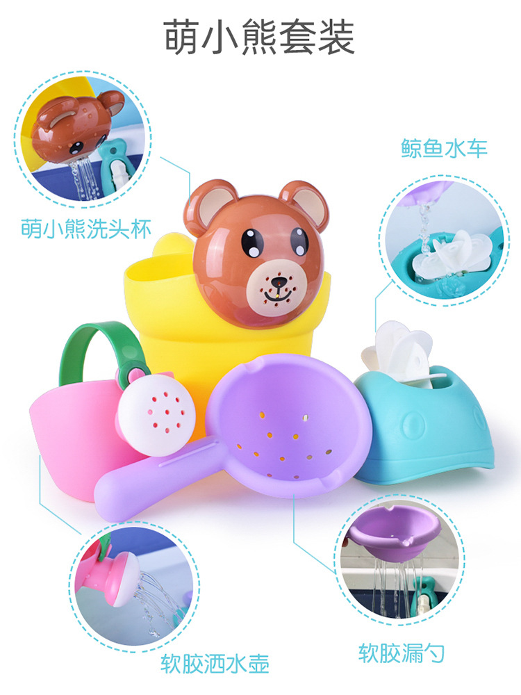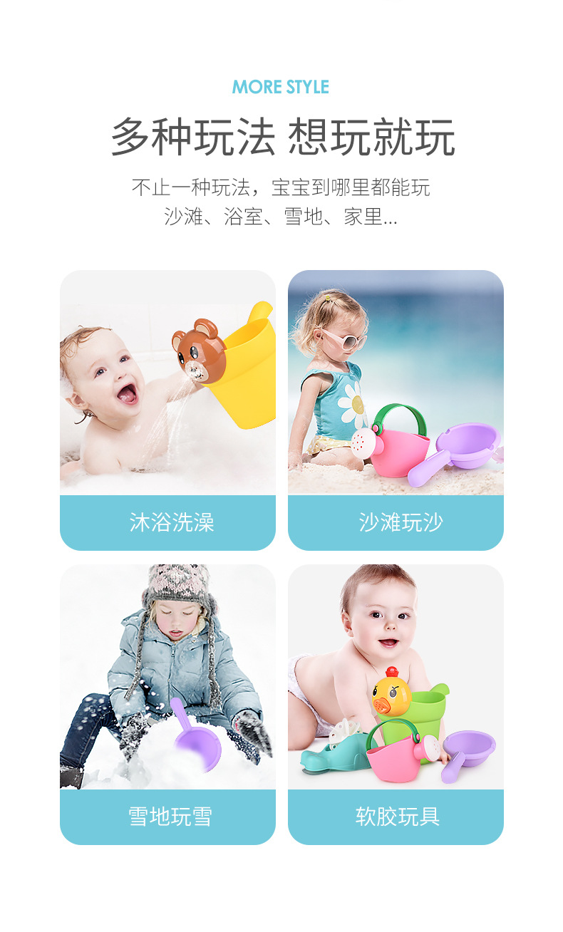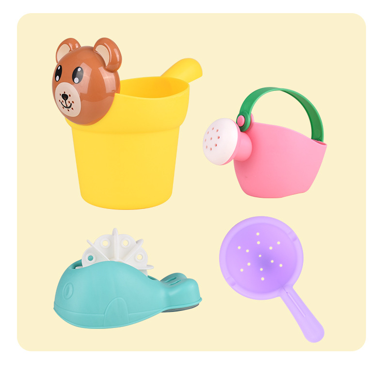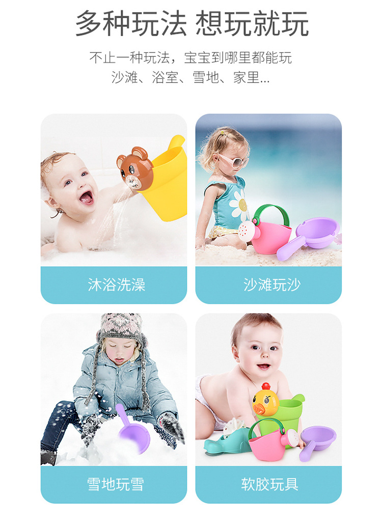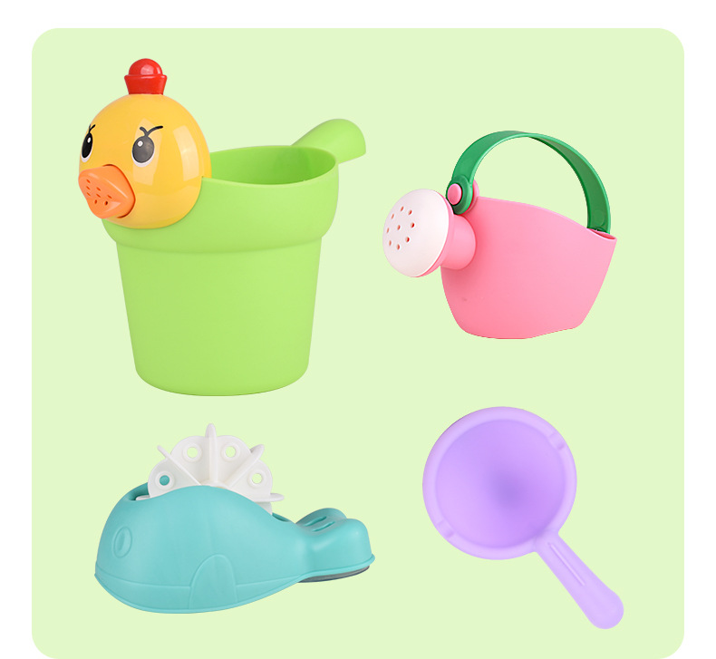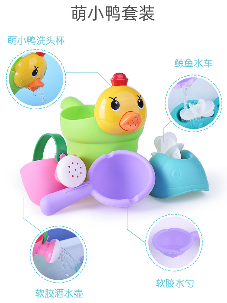 【多种玩法 想玩就玩】黄鸭儿童洗澡戏水4件套花洒水宝宝水壶套装软胶沙滩水桶玩具