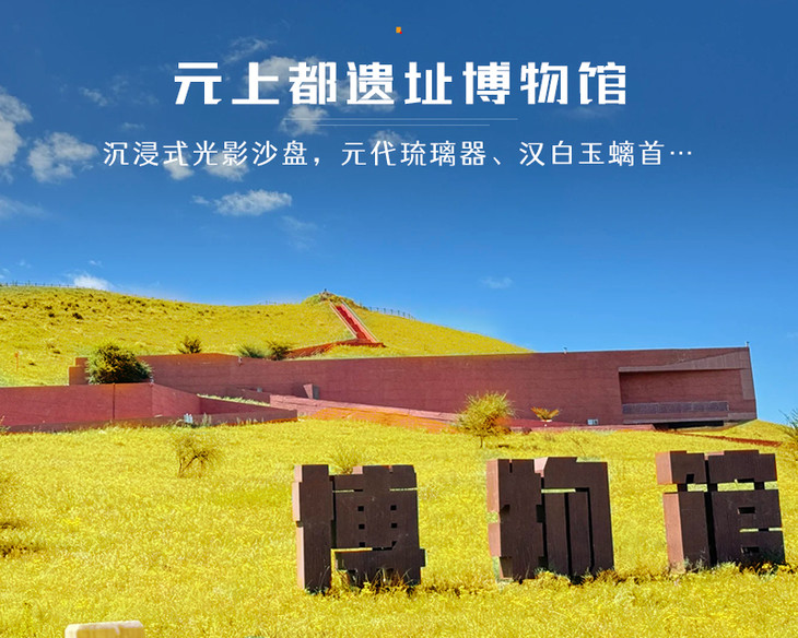 3)门票:包含行程所列所有景点门票(多伦湖景区、元上都遗址、元上都博物馆)、穿越过路费;
