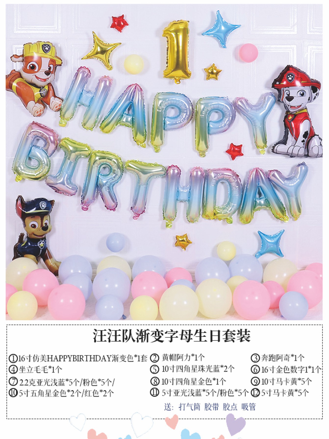 生日派对|儿童生日快乐汪汪队气球派对场景布置周年房间背景墙套餐装饰品