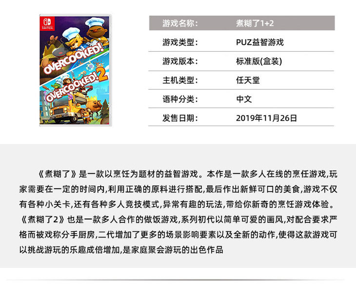 【畅玩卡可租】二手Switch游戏 胡闹厨房 煮糊了1+2合集 中英文版