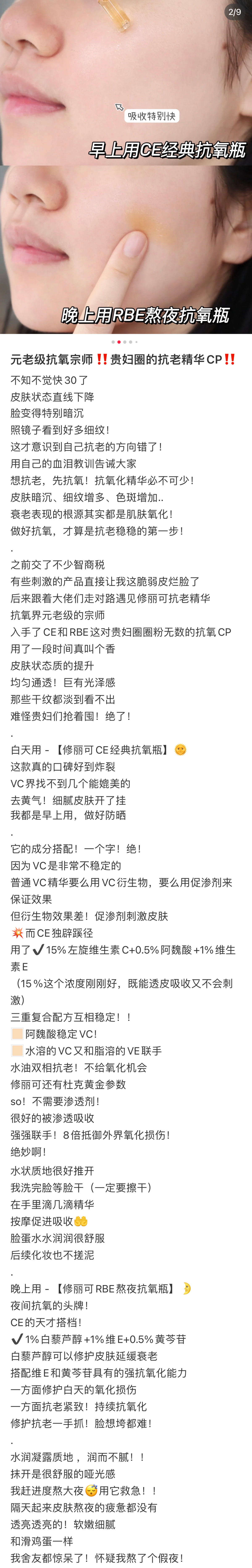 我心心念念的CF,一直觉是跟发光瓶搭配的,但是这次在了解产品的过程中才发现,CF是日间精华,这款肌活修fu夜间精华(BE)才是CF的正宫CP,它们俩一个白天,一个晚上,被很多网友认定为亢氧CP。