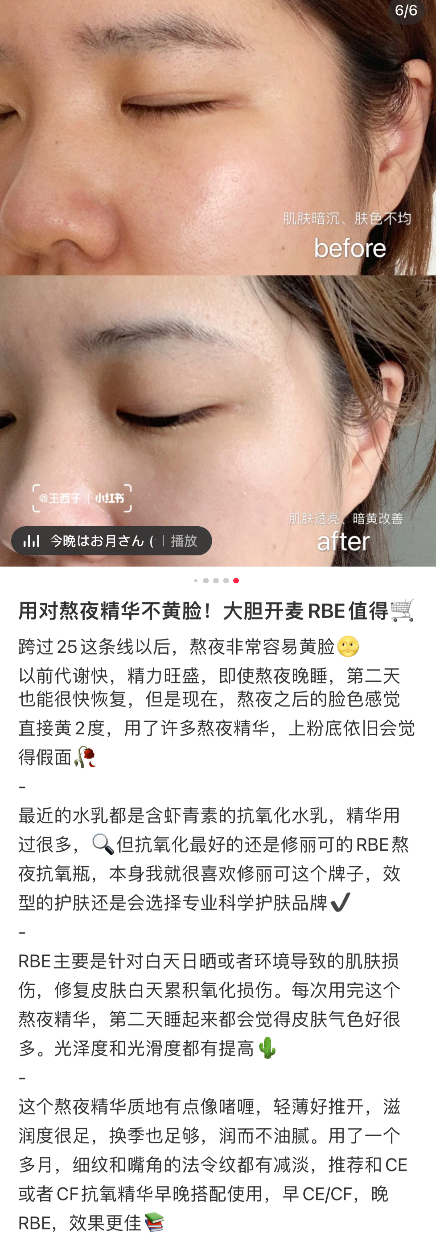 BE的官方名字是肌活修护夜间精华凝露,质地有点类似于凝胶,刚上脸的话有点油腻,但是吸收后这种油腻感会消失。干皮如果还会觉得不够润的话可以后续加个保湿点的面霜。晚上用了之后,第二天起来肌肤会有光泽,摸起来也软嫩!对闭口、痘痘也有效哦!