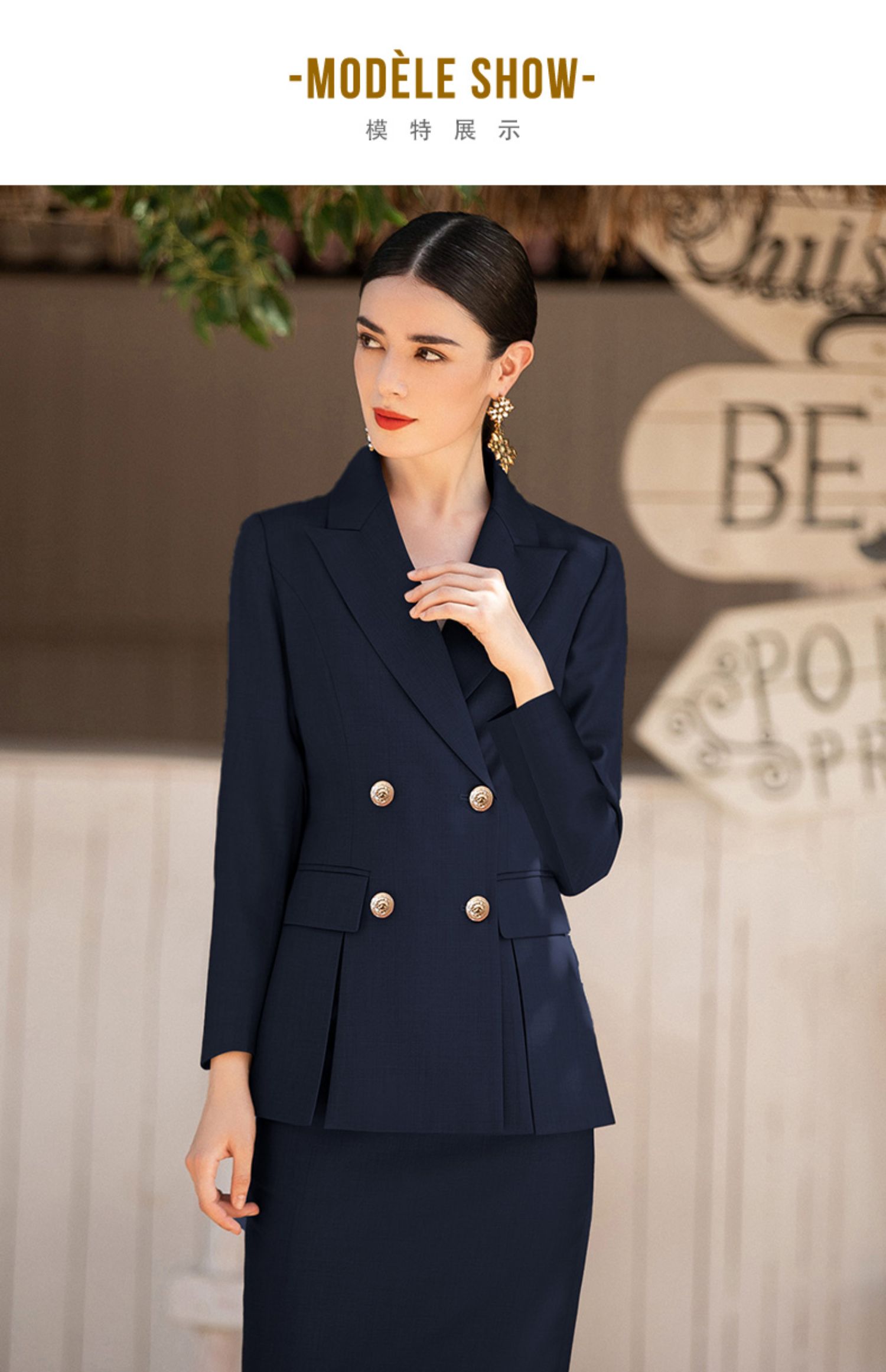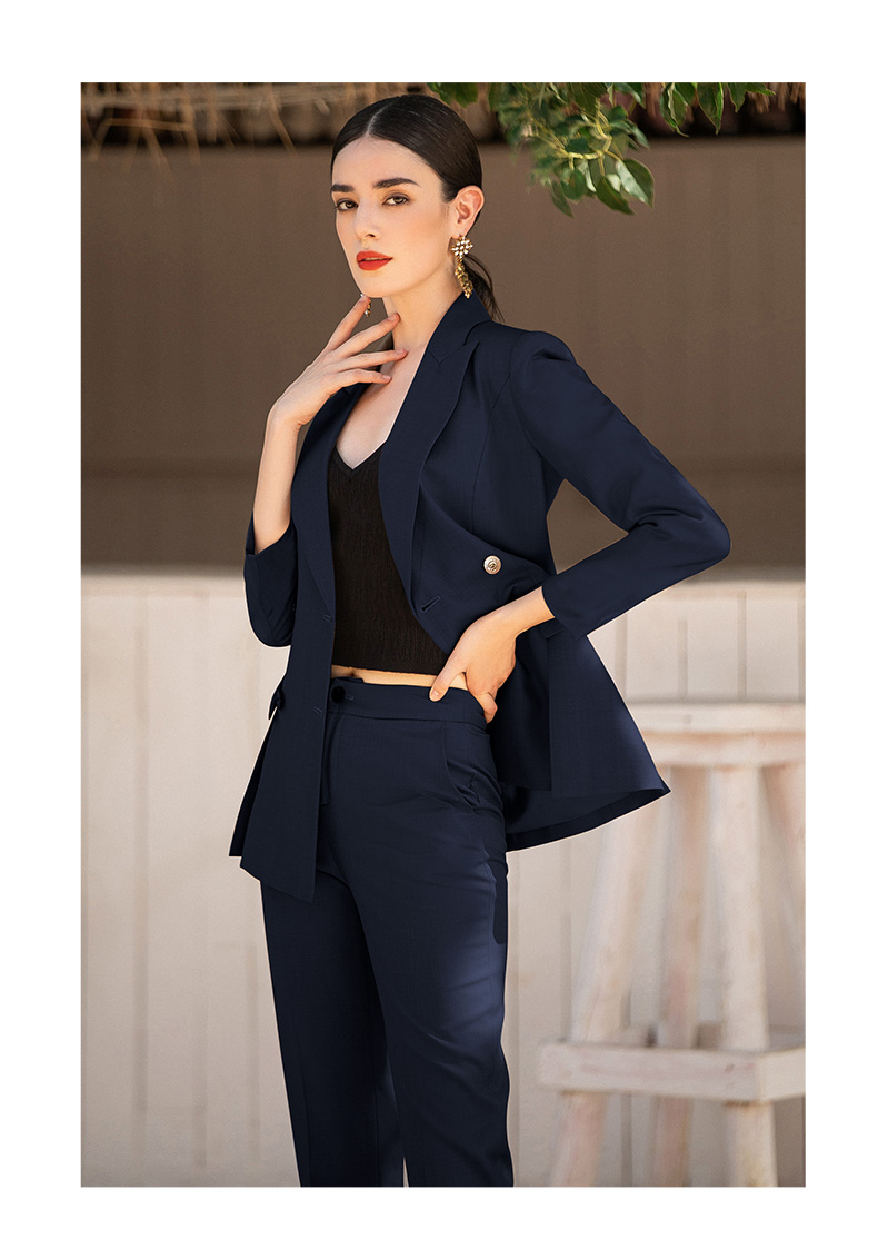 AD高端职业装气质女神范职场套装双排扣干练西服播音艺考服装套裙