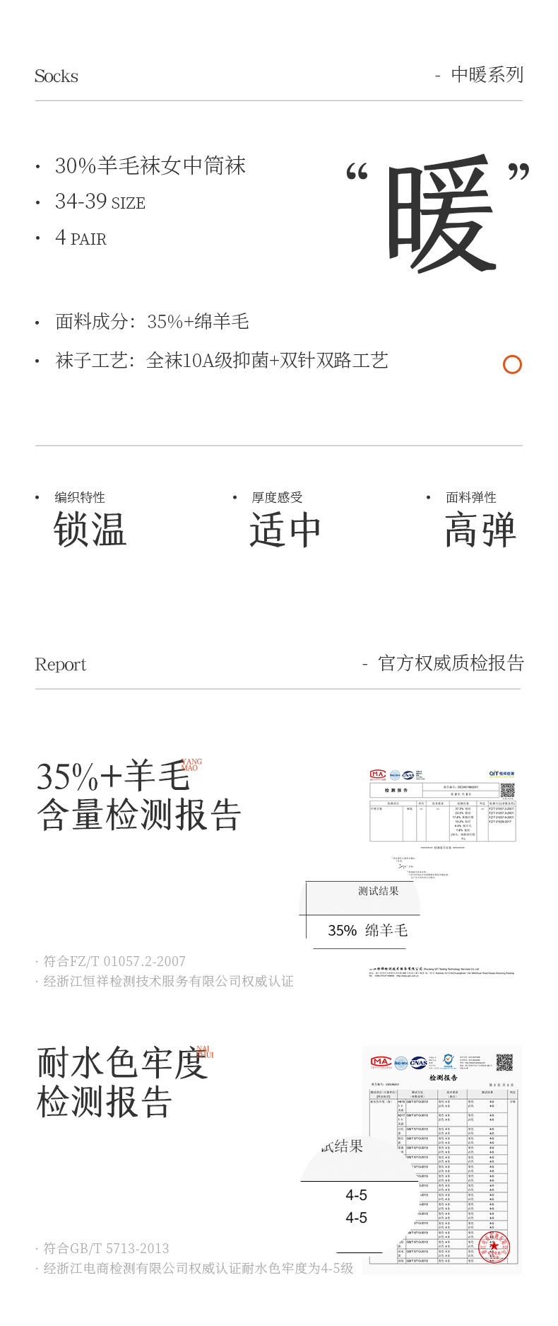 拾袜记 秋冬保暖羊毛袜 4双礼盒装 男款/女款 羊毛中筒袜