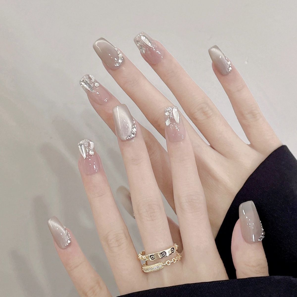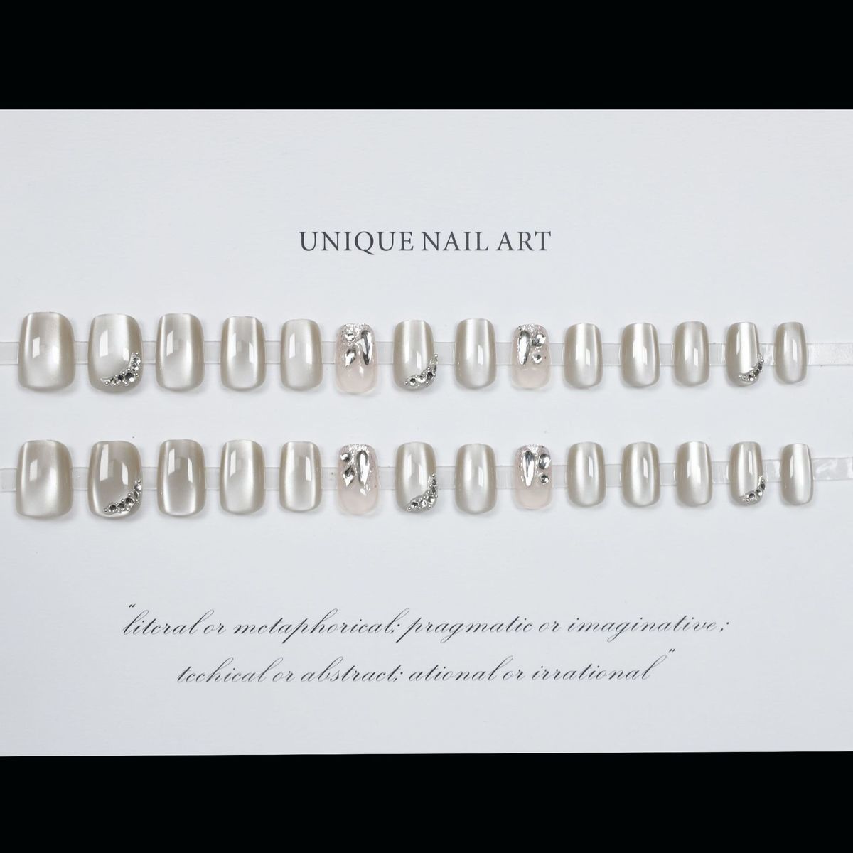 2024清冷风穿戴甲爆闪贴钻玻璃珠猫眼美甲新娘婚礼婚纱照指甲贴片
