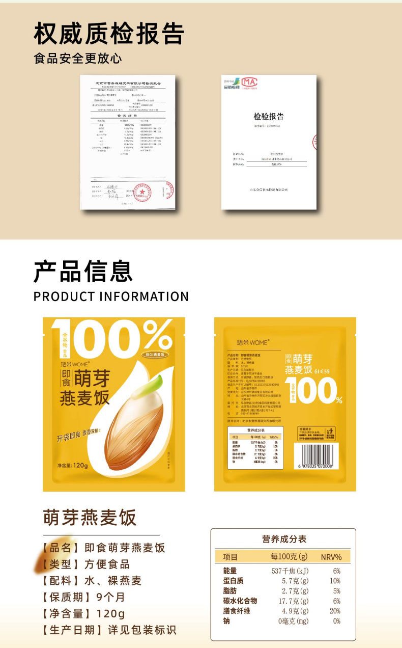 69元1箱12袋,2箱减10元【低GI标识 麦香Q弹】珸米即食萌芽燕麦饭全谷物【配料表只有水+裸燕麦】
