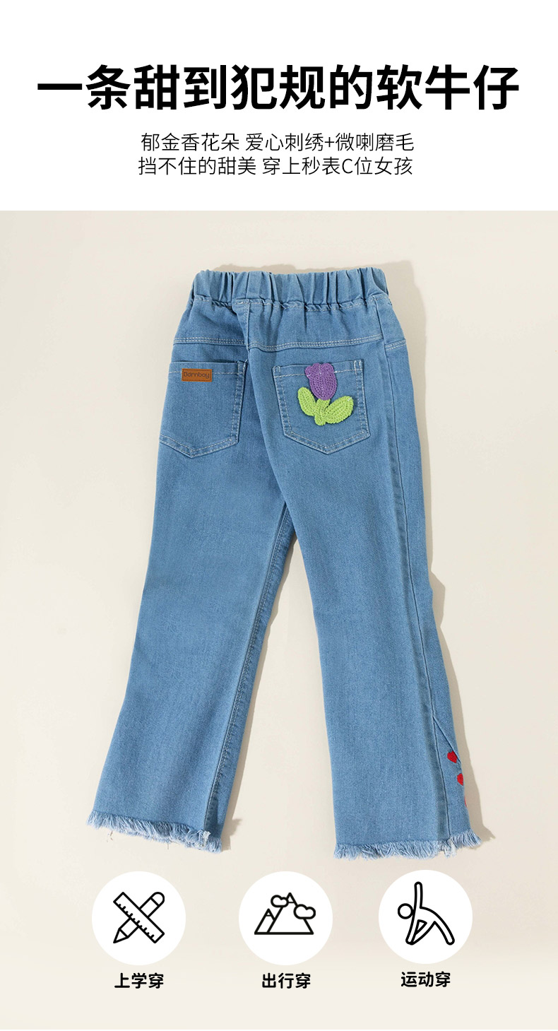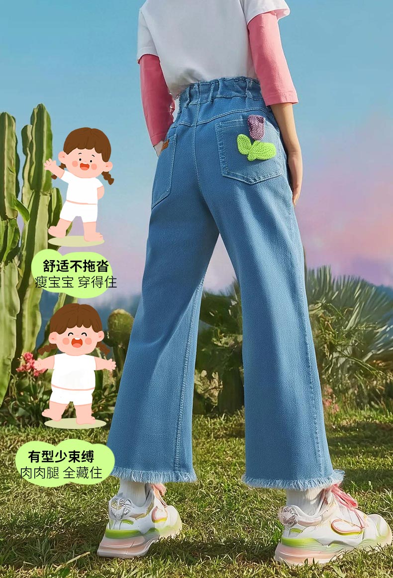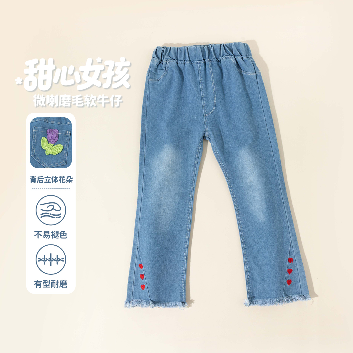 贝贝怡女童牛仔裤小童宝宝长裤儿童裤子洋气2025春秋新款童装潮ZB3EK006
