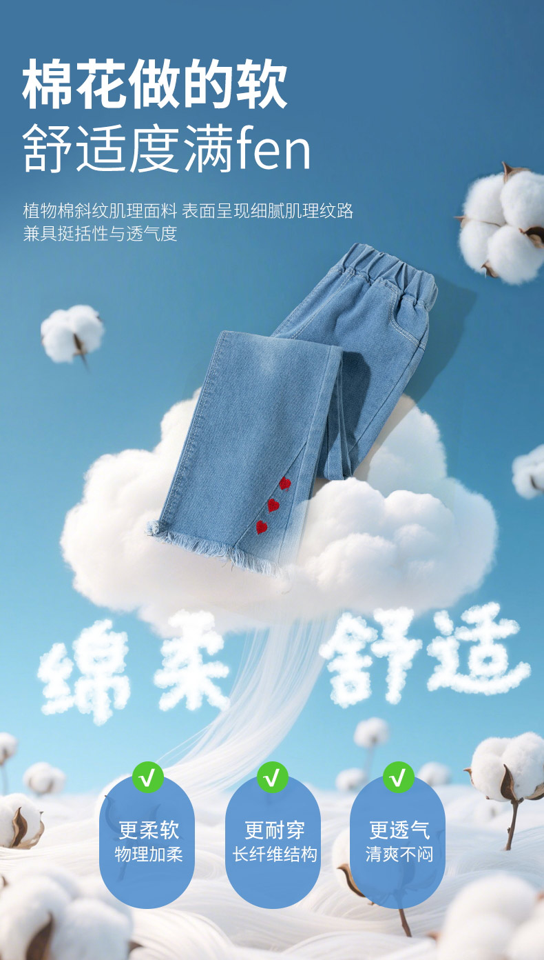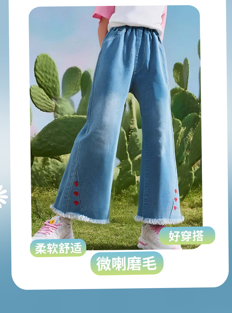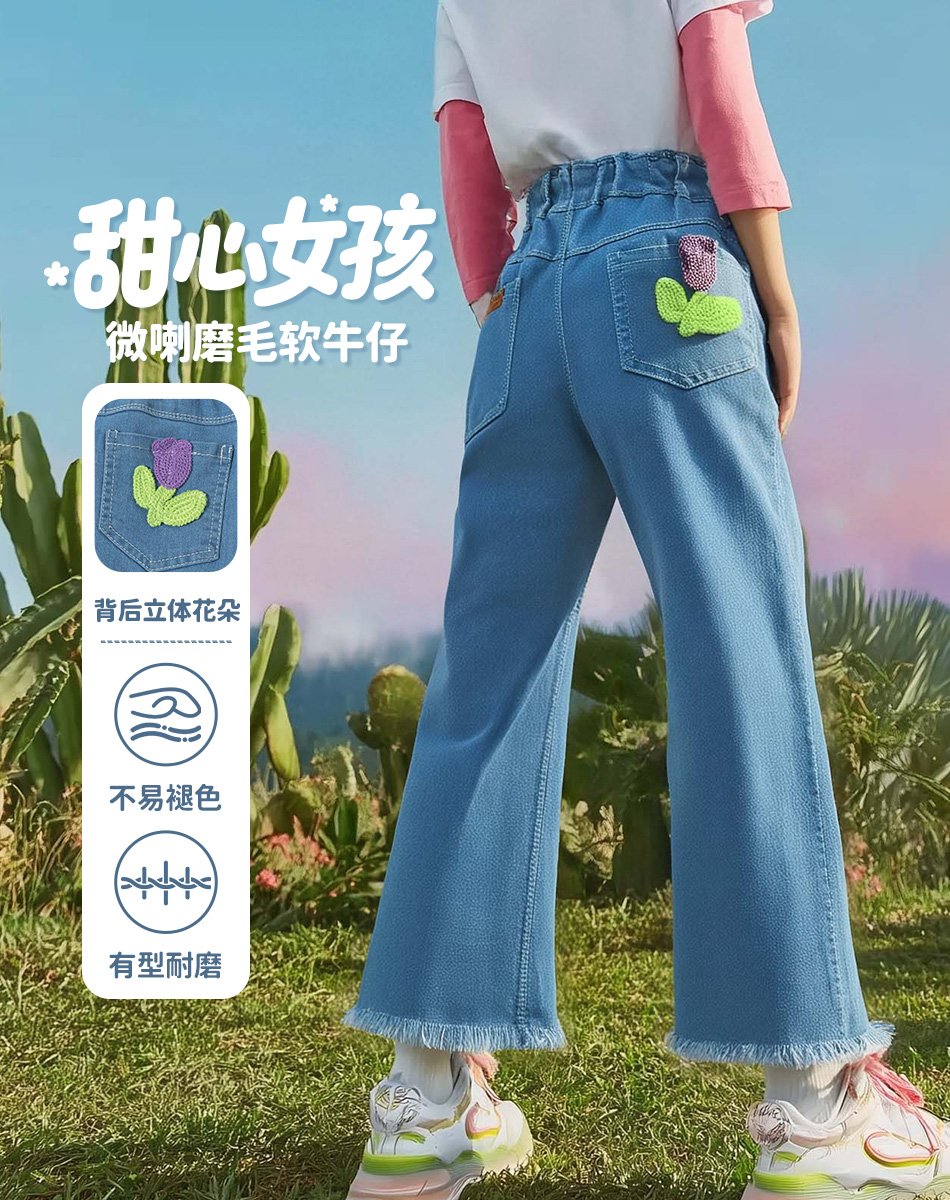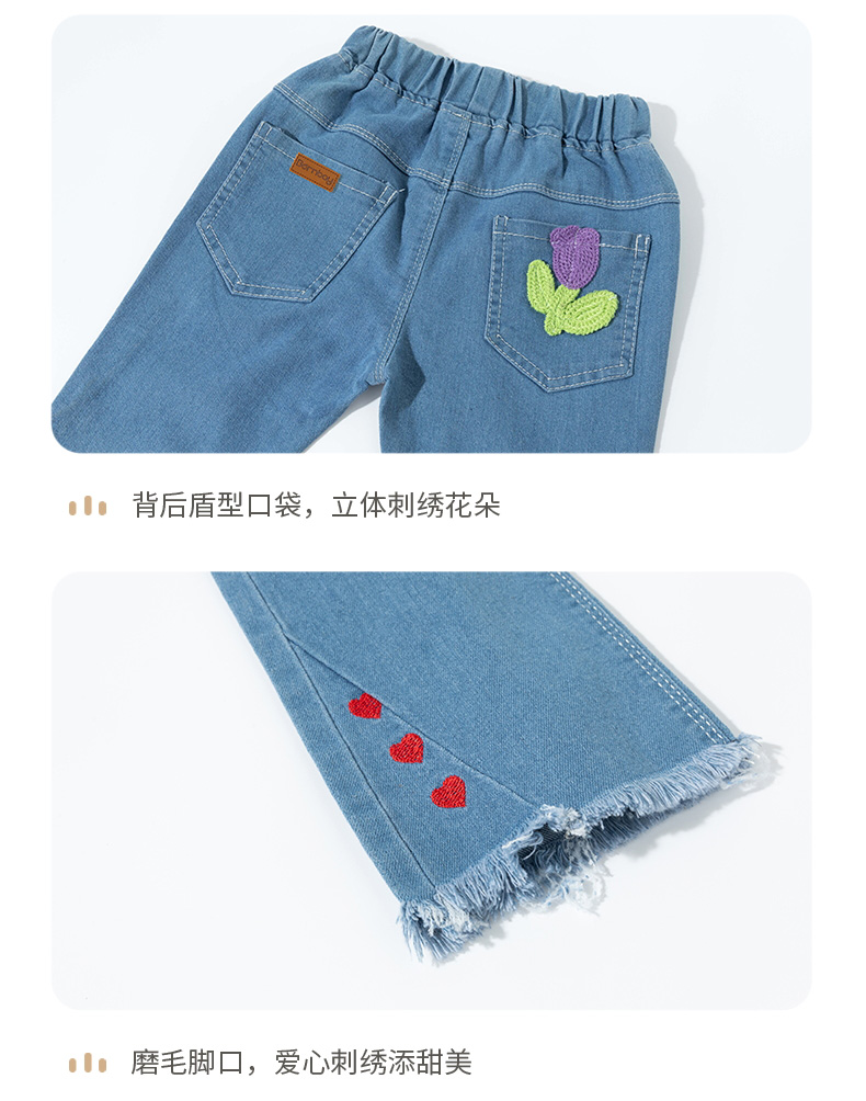 贝贝怡女童牛仔裤小童宝宝长裤儿童裤子洋气2025春秋新款童装潮ZB3EK006