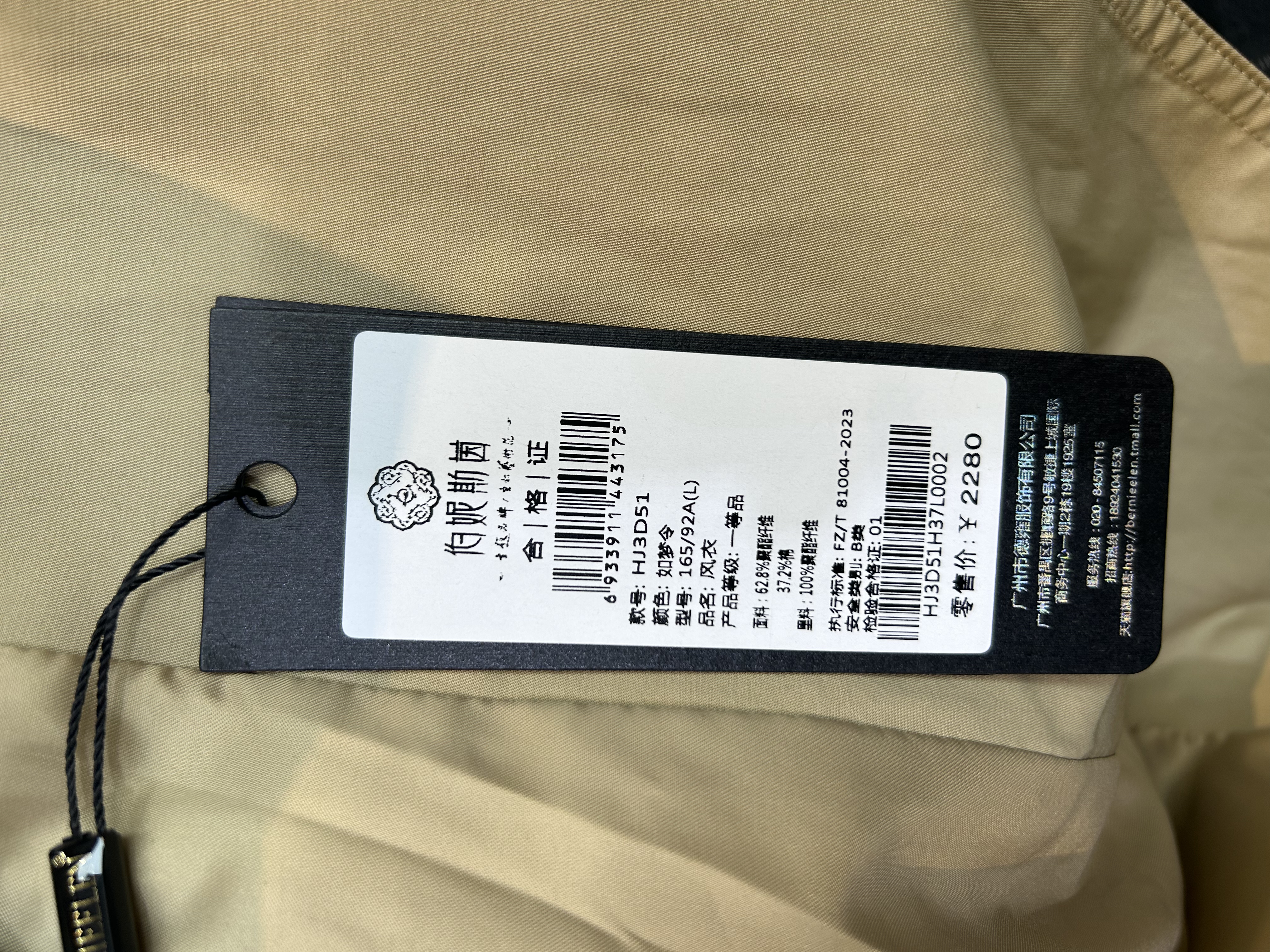 伯妮斯茵 | 经典英伦风 卡其色双排扣系带风衣 立领长款过膝外套 春秋气质通勤大衣 HJ3D51