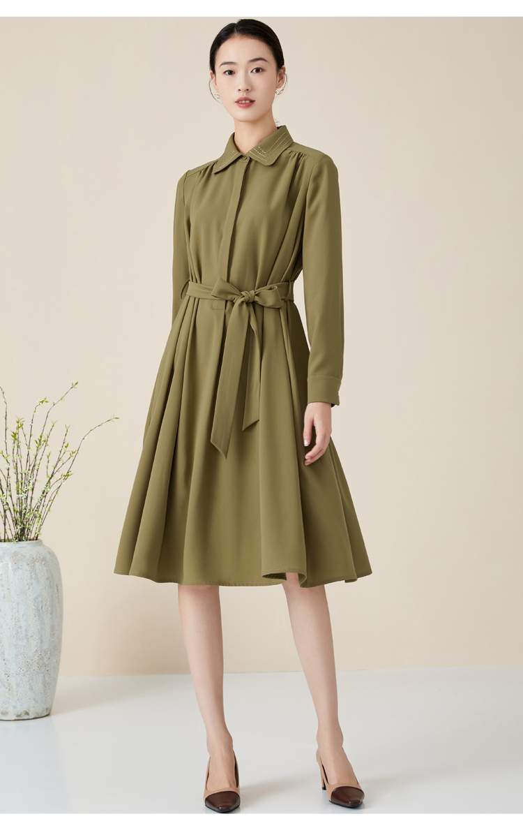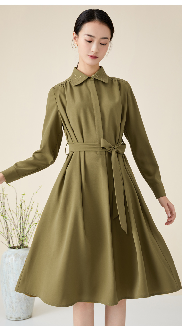 玳莎衬衫连衣裙女 秋季设计感长袖收腰显瘦气质中长款裙子 BC35303