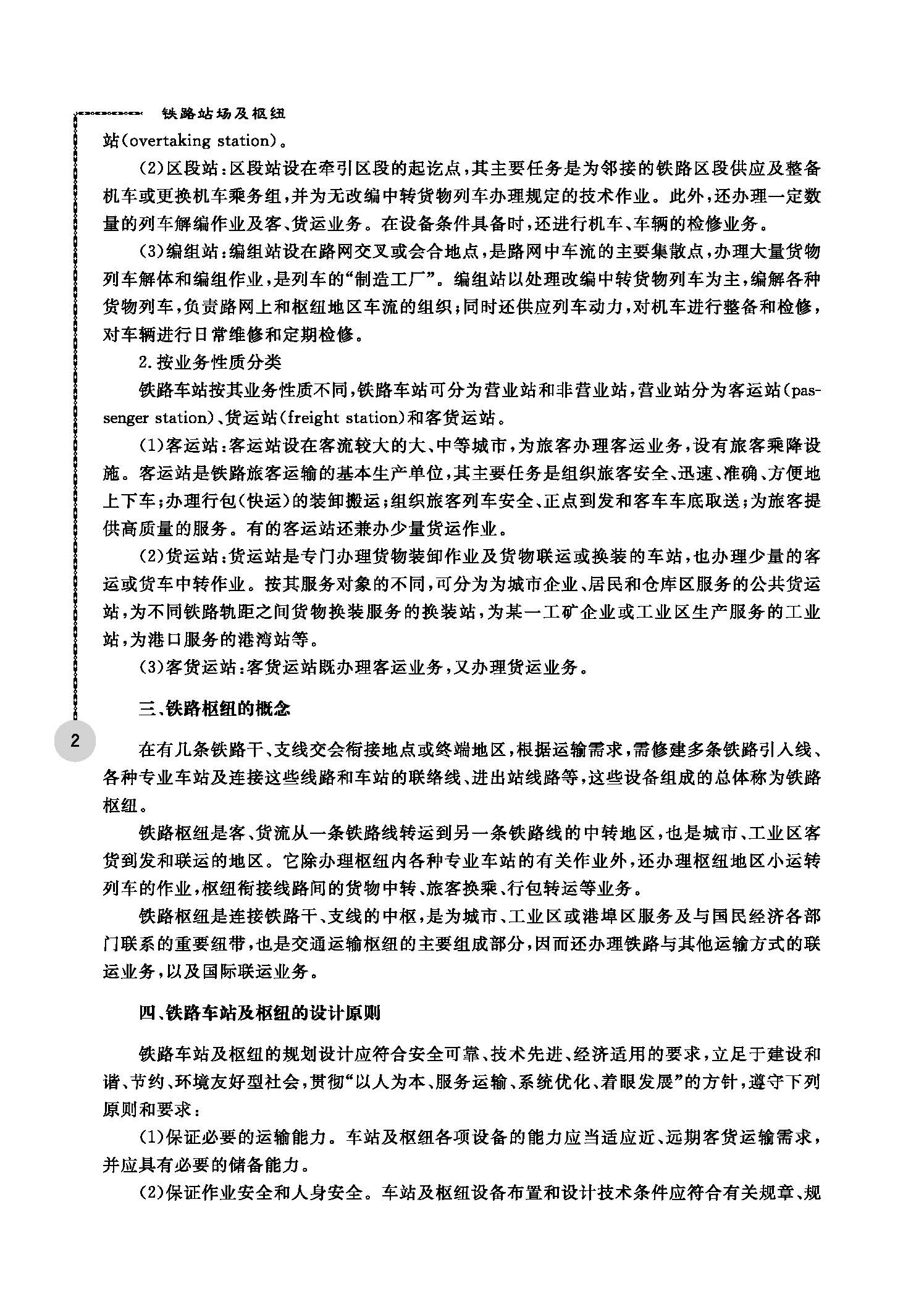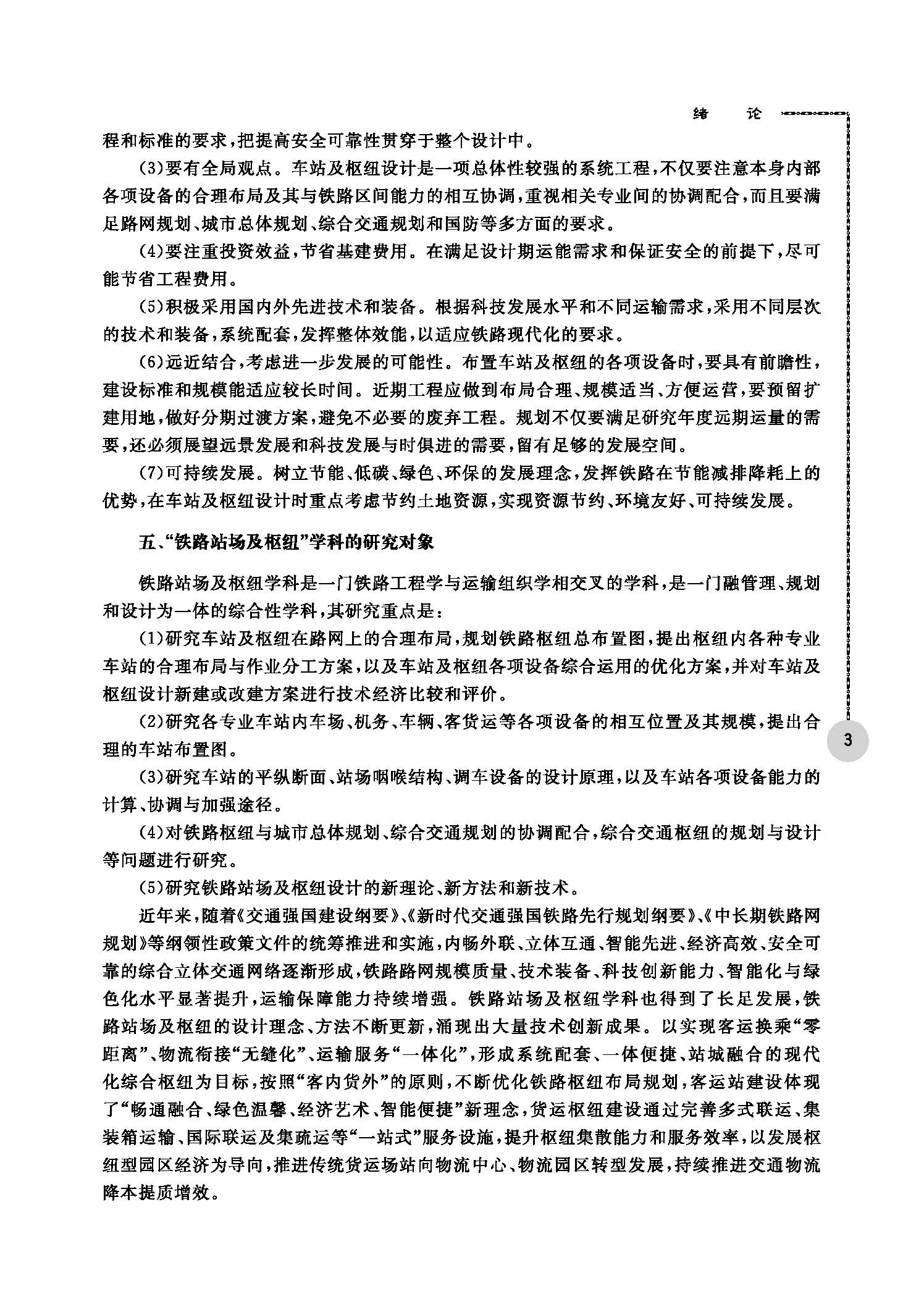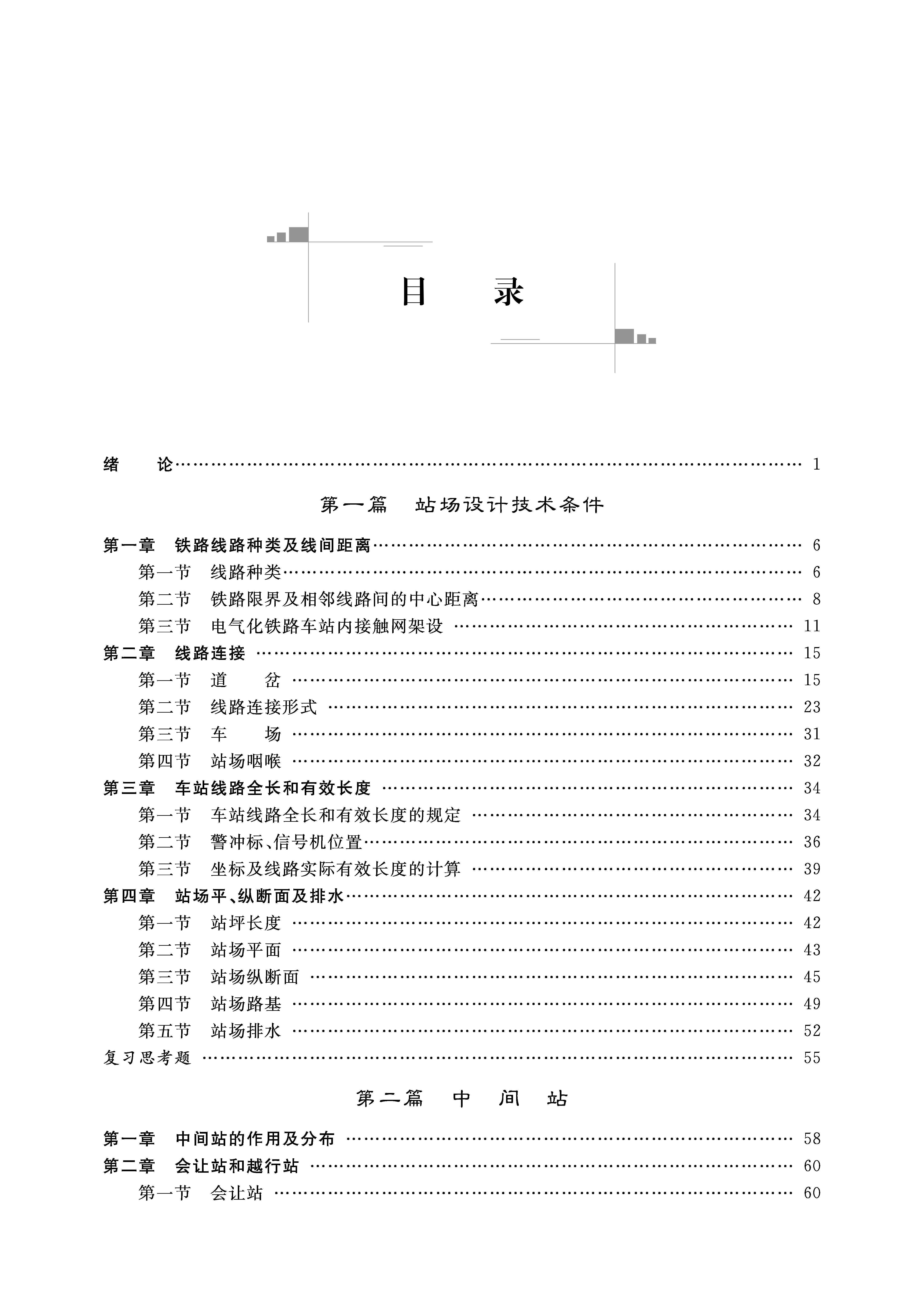 全书共分七篇,内容包括站场设计技术条件,车站线路连接,平纵断面设计;各类车站(中间站、技术站、客运站、货运站等)的布置图分析;设备数量及通过能力计算;调车驼峰设计原理;铁路枢纽总布置图及规划等。本次修订将紧密结合铁路运输专业站场枢纽规划设计理论方法的发展及实践运用,尤其是高速铁路的建设以及铁路运输新技术、新装备、新成果、新理论的发展和完善,《技规》、《站规》、《线规》等相关标准规范的重新制定等站场枢纽设计的新变化进行。在修订过程中将进一步强调理论联系实际以及学生学习能力的加强和思维方法的培养,在总结提炼国内外本学科最新的研究成果和精粹的基础上,根据编者长期积累的丰富教学经验和相关教学改革成果对内容进行组织,体现铁路站场与枢纽课程的教学和认识规律,加强站场枢纽设计理论方法的体系化凝练。