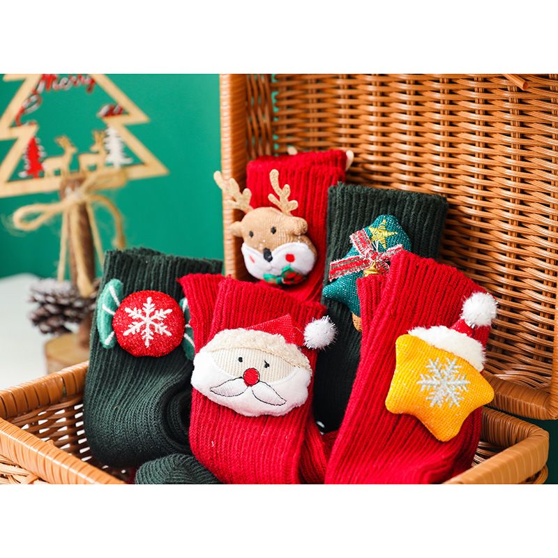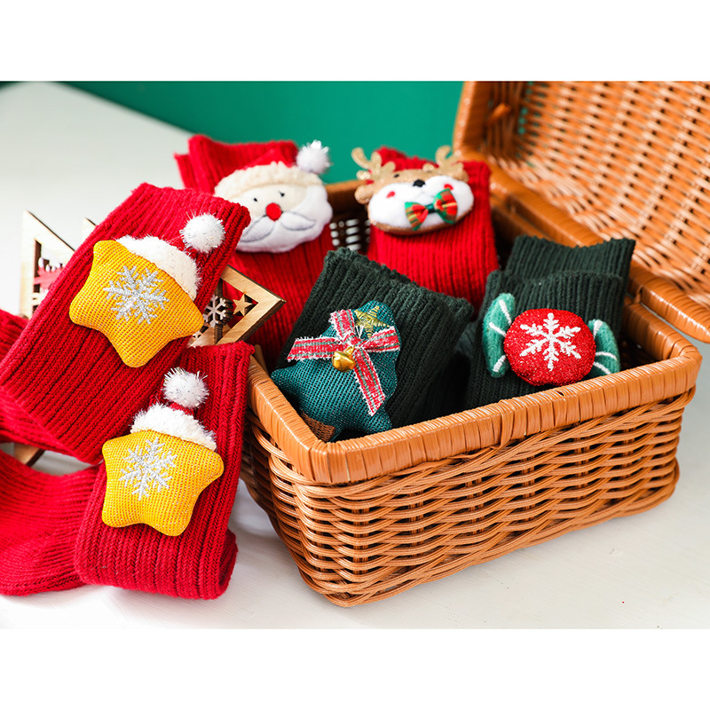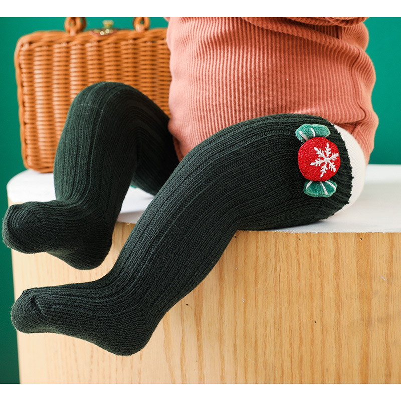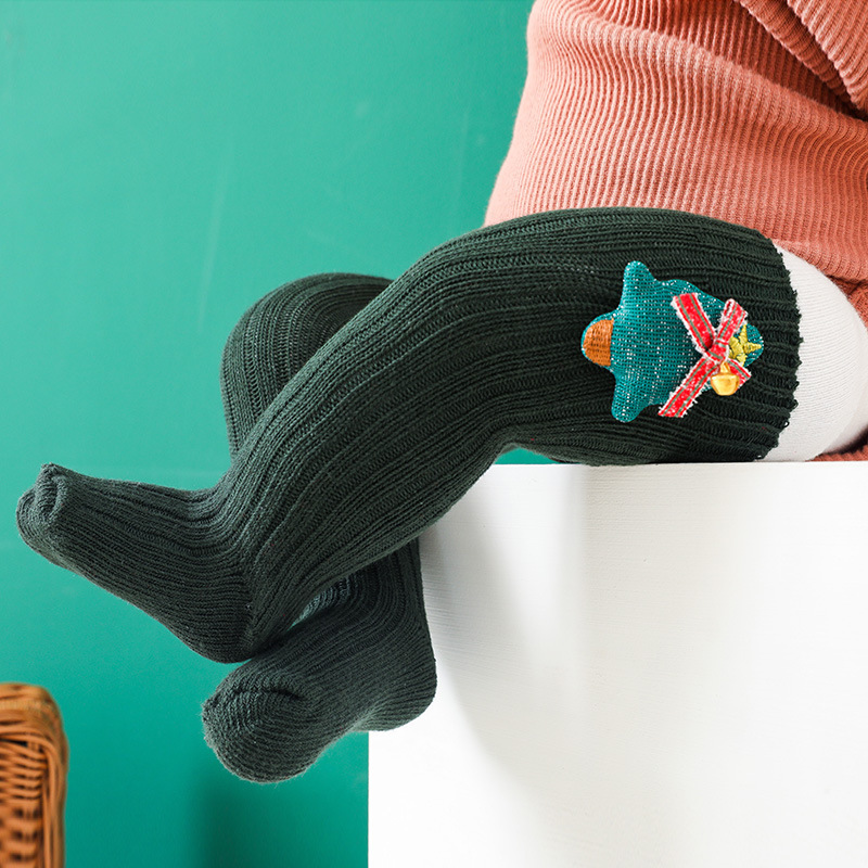 【ins宝宝新年圣诞过膝袜】儿童卡通铃铛公仔毛线过膝长筒袜西班牙新生婴儿袜