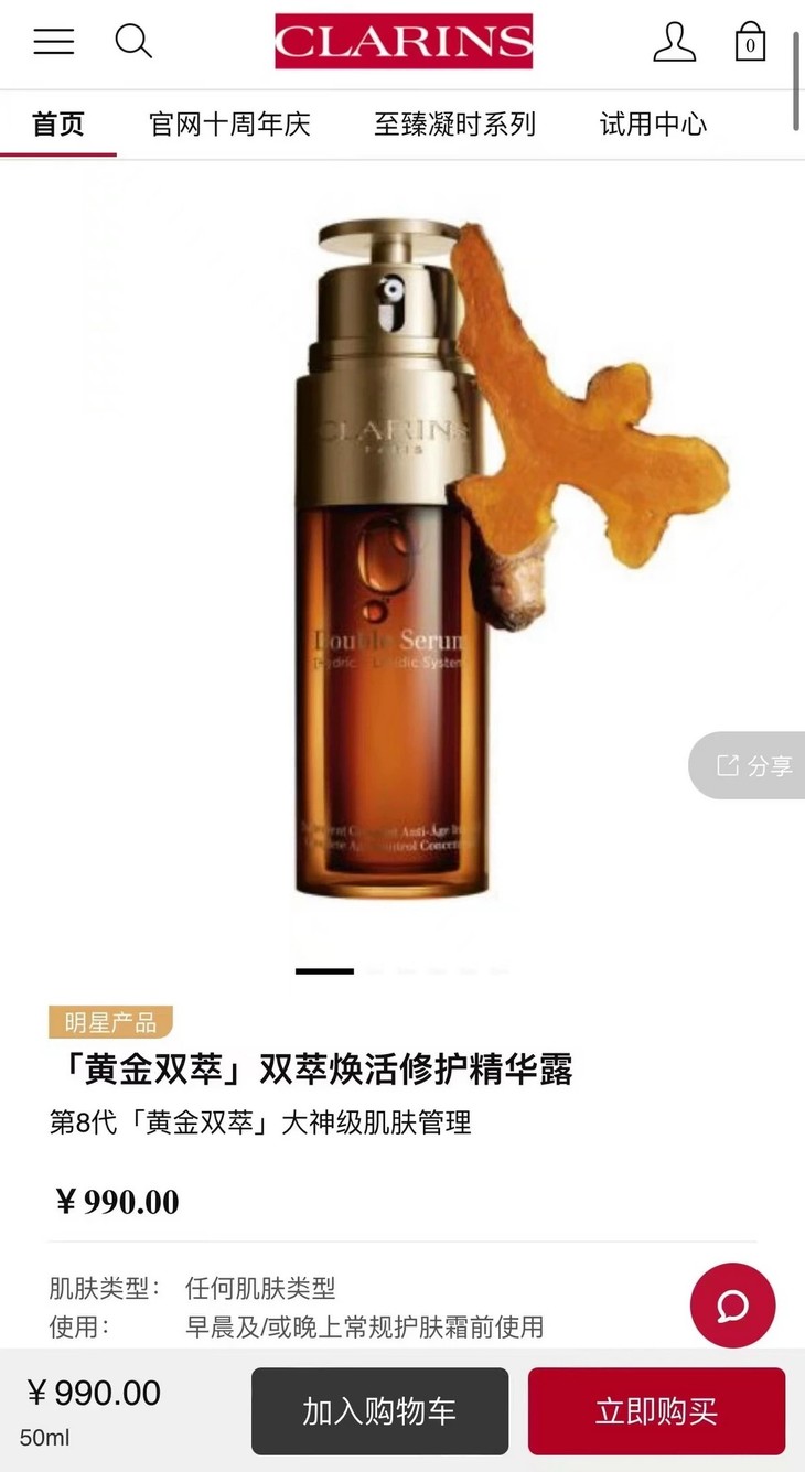 .深圳明通货,可退货。迪丽热巴同款热度炸裂 娇**韵诗黄金双萃精华液 正装50ml 深圳免税版 全网都在推的熬夜神器娇韵诗精华