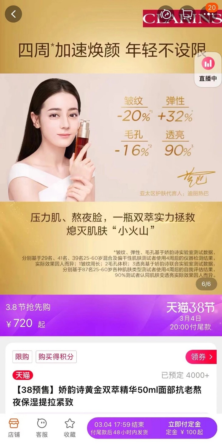 迪丽热巴同款热度炸裂 娇**韵诗黄金双萃精华液 正装50ml 深圳免税版 全网都在推的熬夜神器娇韵诗精华 真的谁用谁都会夸的一款产品 ]