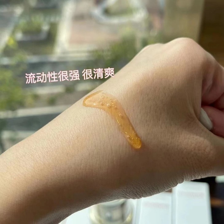 主打功效:保湿√ 提亮 修复v 抗初老v 淡淡的植物清香,咖啡色液 体和透明油状液体。抗初老,修复力惊人,改善 红血丝! 熬夜必备