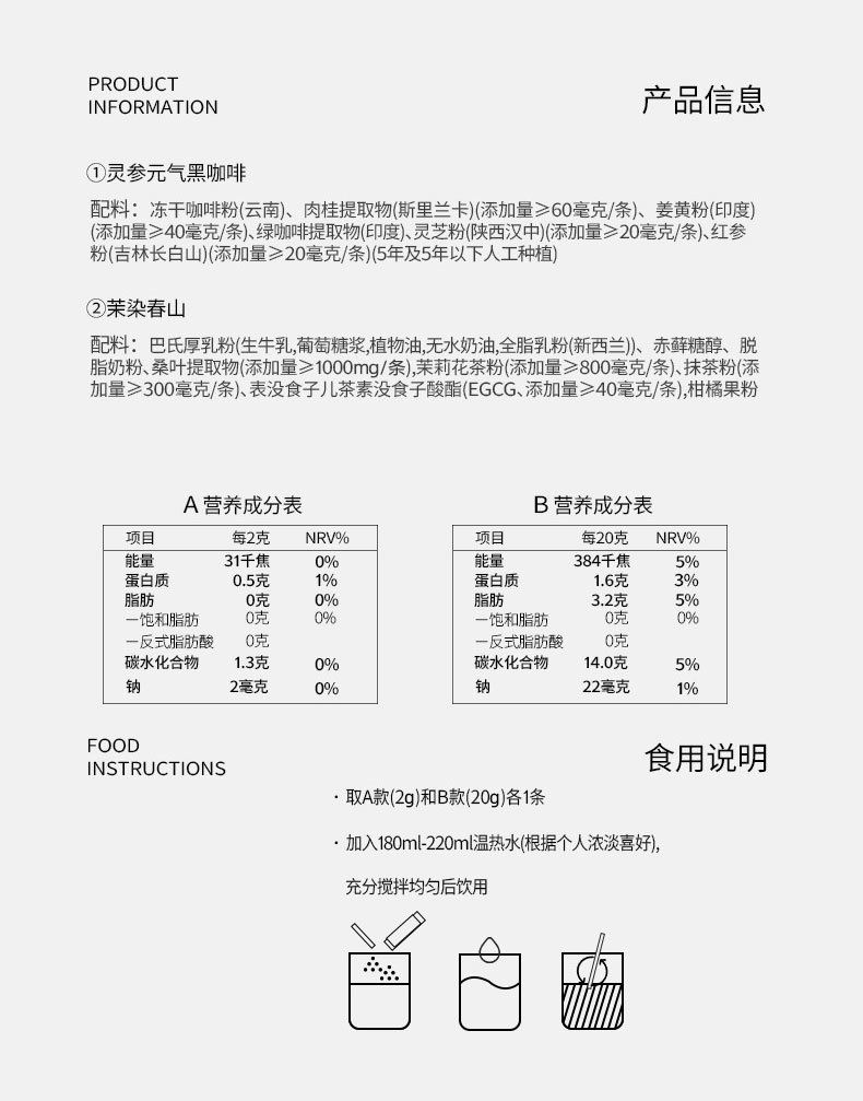 伴氧茉染春山灵参元气黑咖啡3盒装双生组合冻干速溶咖啡(7袋/盒)