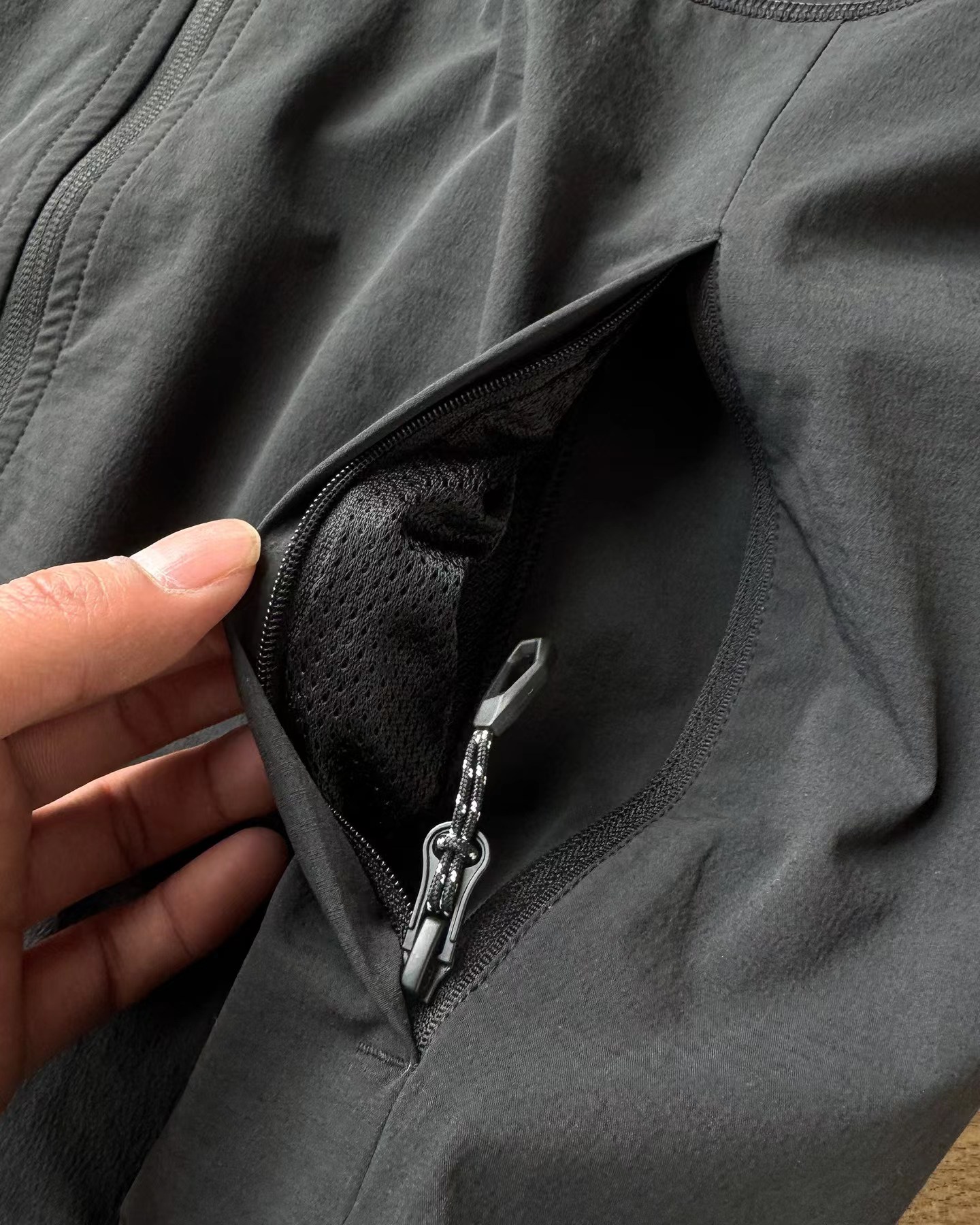 轻量单层弹力外套 男女同款 软壳连帽夹克 基础夹克 轻便中间层高透气速干夹克!面料上含有暗条纹工艺!衣服有垂感 防泼水 手感细腻 无畏山野 清爽征途 轻量中间层夹克,面料轻微有弹力 抗风锁温 持续清新 以舒适灵动姿态 ?为您探索,保驾护航!【这是一款锦纶氨纶面料的 弹性夹克 可以搭配马甲 羽绒服 冲锋衣 作为中间层 面料透气 可以快速调节运动中的汗水 ?使穿着者长期保持干燥!可单穿 ?可搭配 ?轻质 弹性伸展 ?整体轻量 足够保暖 ?提升舒适度 ?探索无拘束 !】总而言之一句话 这款连帽软壳外套 款式有设计!三色可选~做工也同样复杂!春天能有这款外套真的会让你穿着率很高!因为它非常百搭!拉链外套穿着场合非常多!男女同款!你值得拥有!