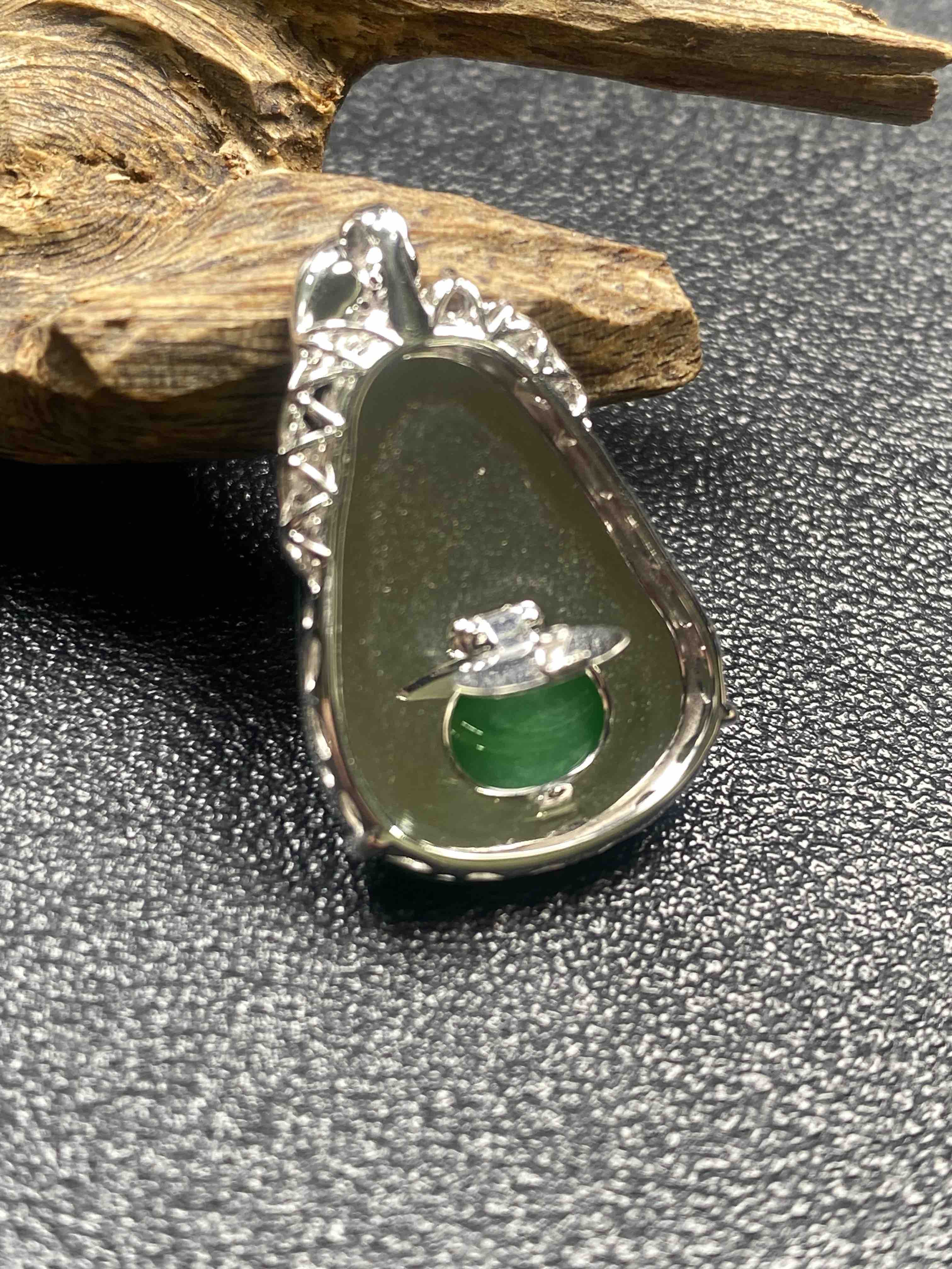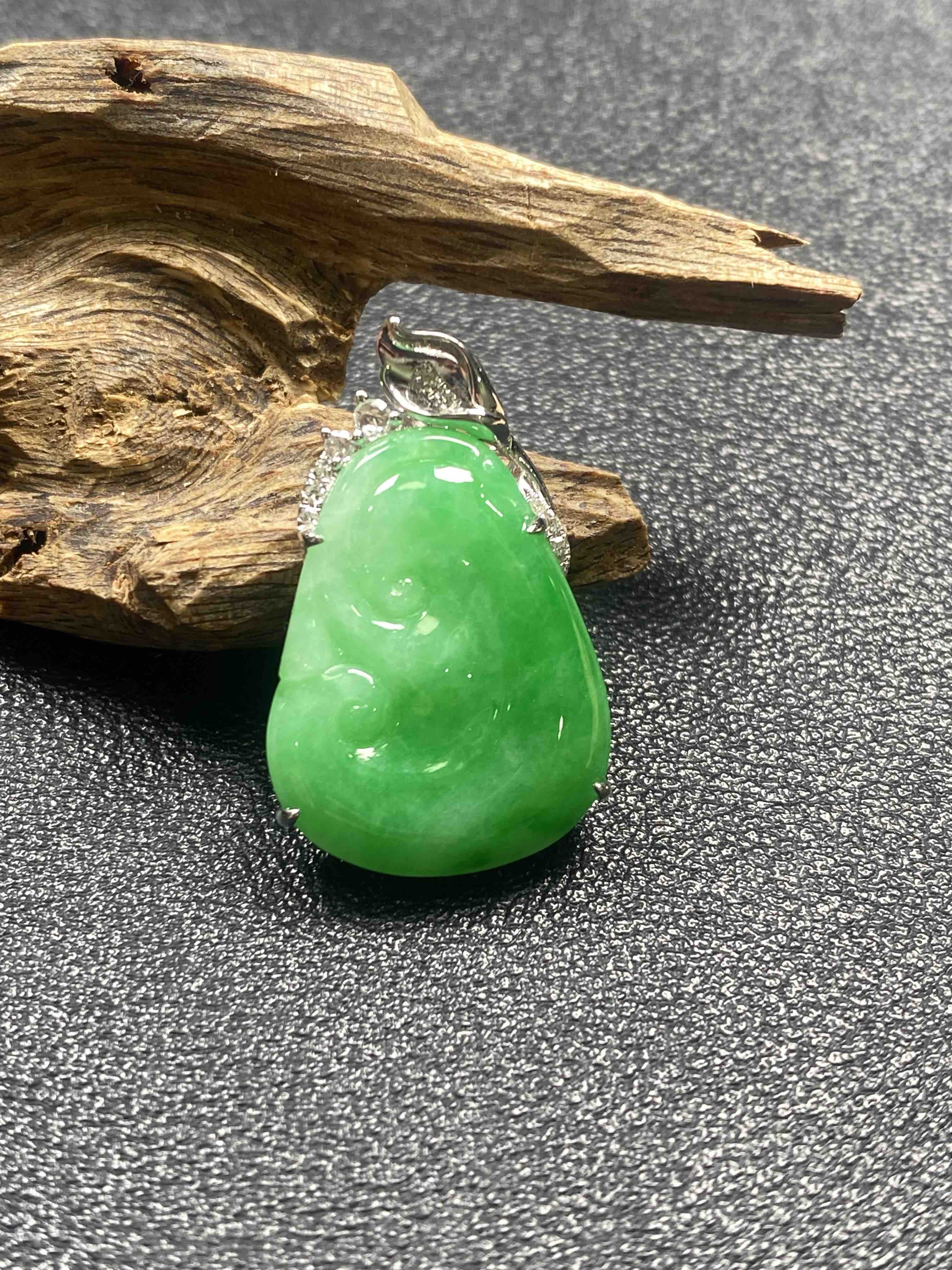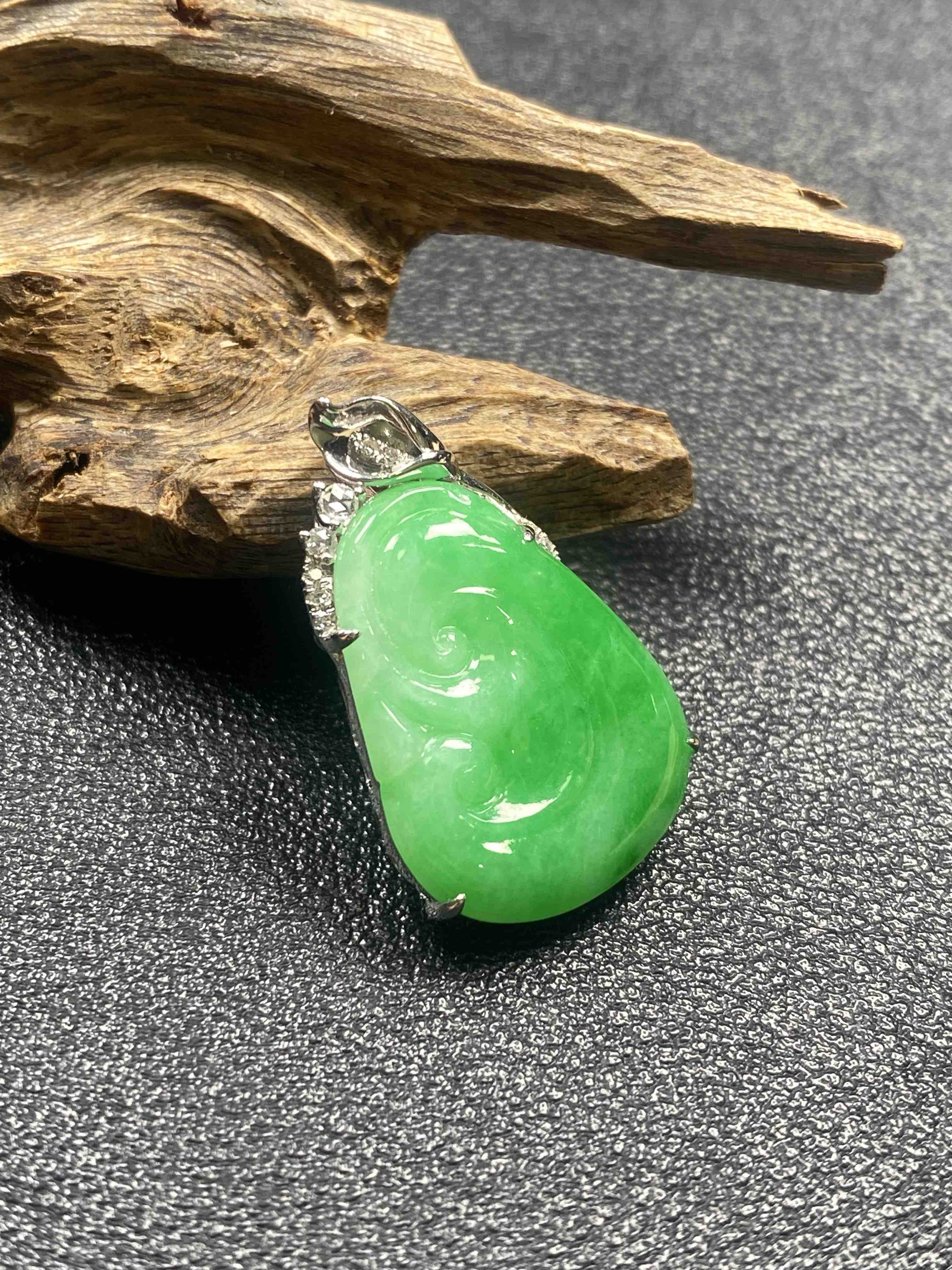 【FC0124】18K镶嵌翡翠冰种阳绿如意吊坠 有种有色 款式精美 吉祥如意 裸石尺寸:21.2*17*2.5mm 超值价💰16000