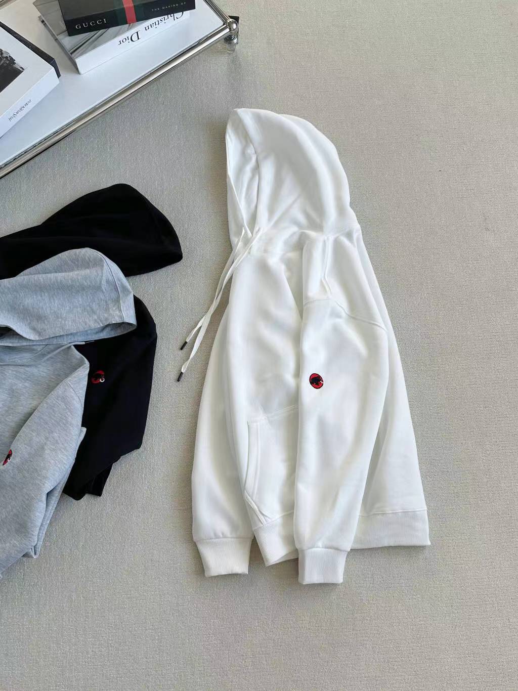 连帽长袖卫衣T恤,采用进口绣花机刺绣,让你穿出更加高大上的感觉,基础休闲 连帽卫衣、面料采用锦棉罗马,男女同款、面料客重为400克原厂锦棉罗马定制夏合、柔软亲肤,胸前LOGO、立体感超强,袖上独有的刺秀,怎么穿搭都好看