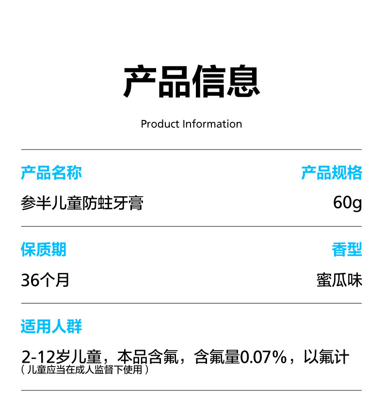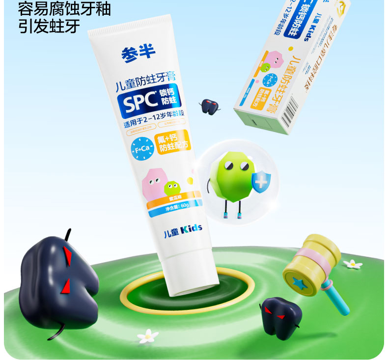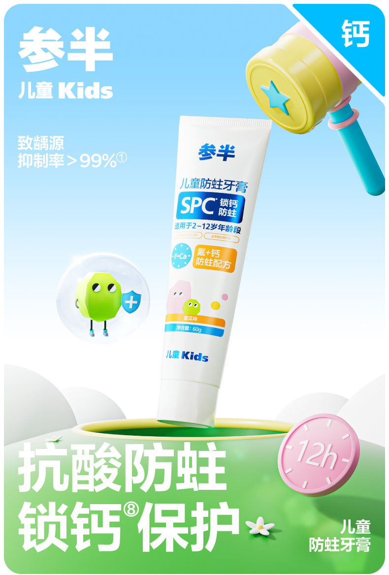【先领券后下单】参半儿童蜜瓜味锁钙防蛀牙膏60g