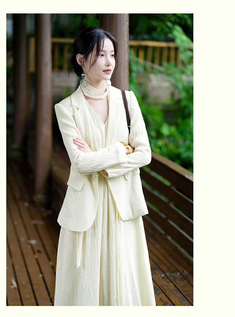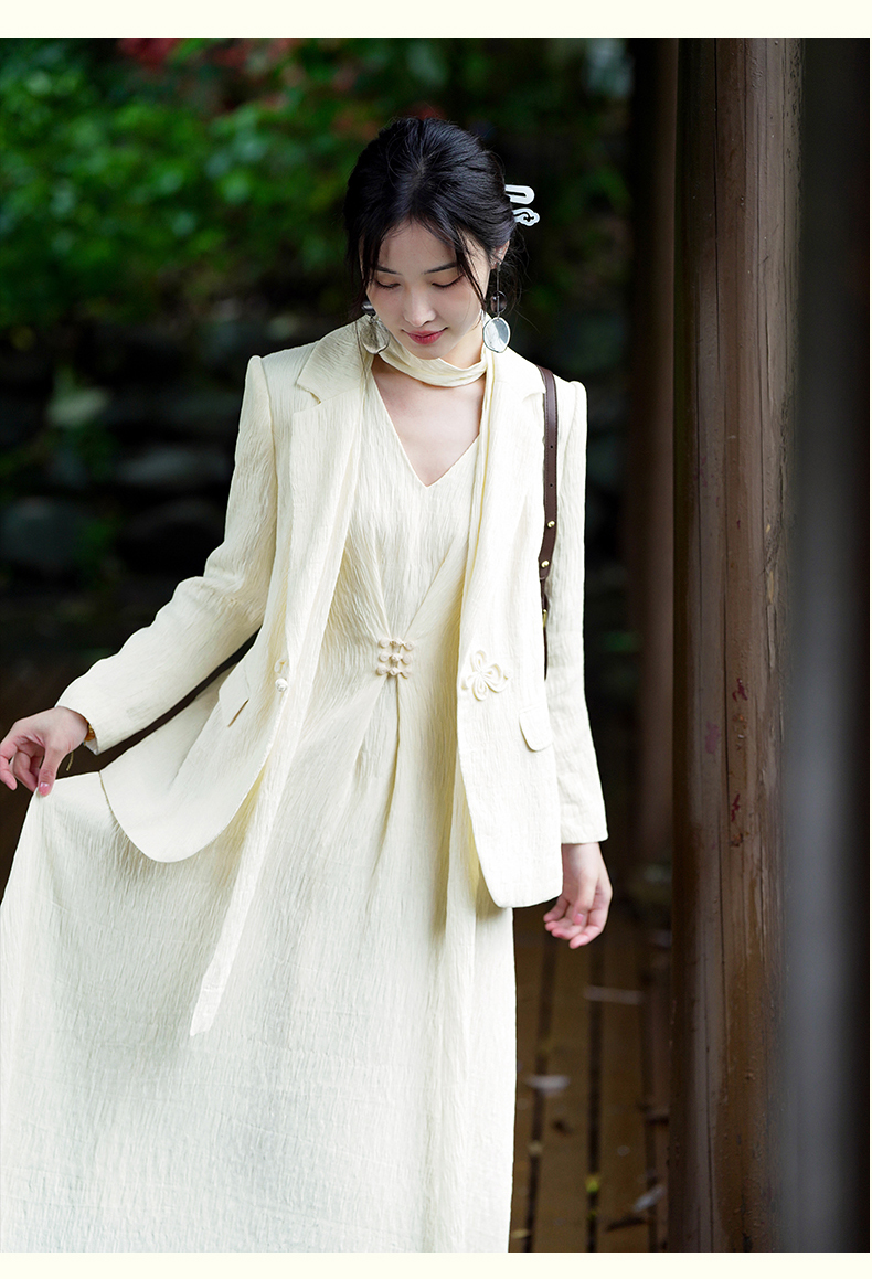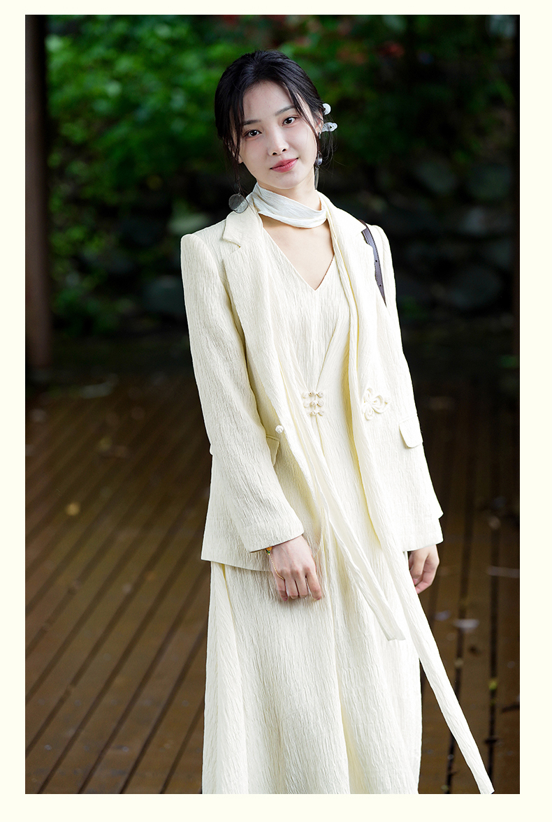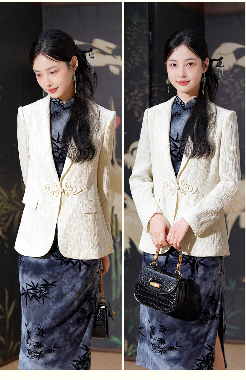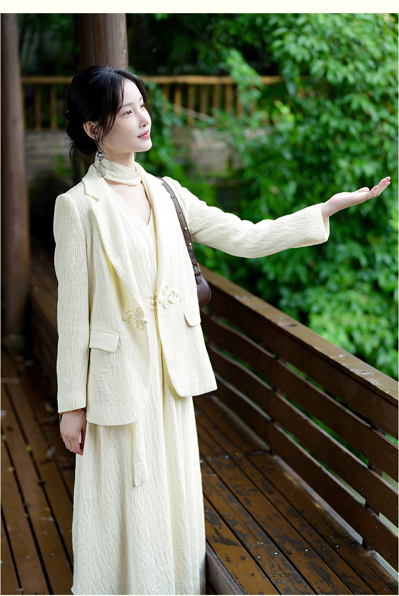 上海逸红颜知微2025年秋季新款立体剪裁褶皱肌理感新中式西装外套