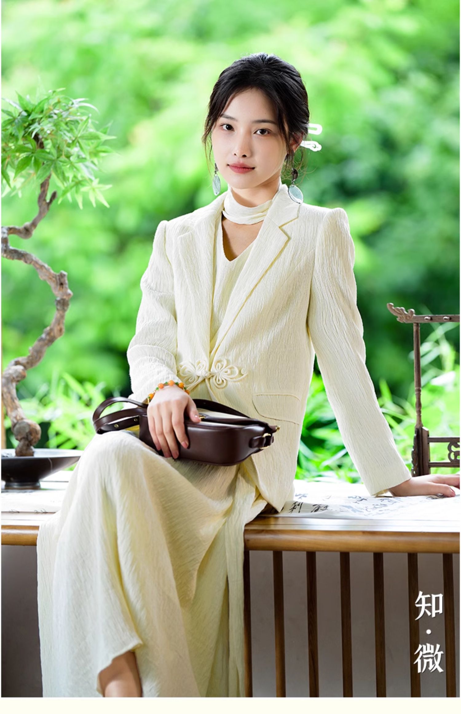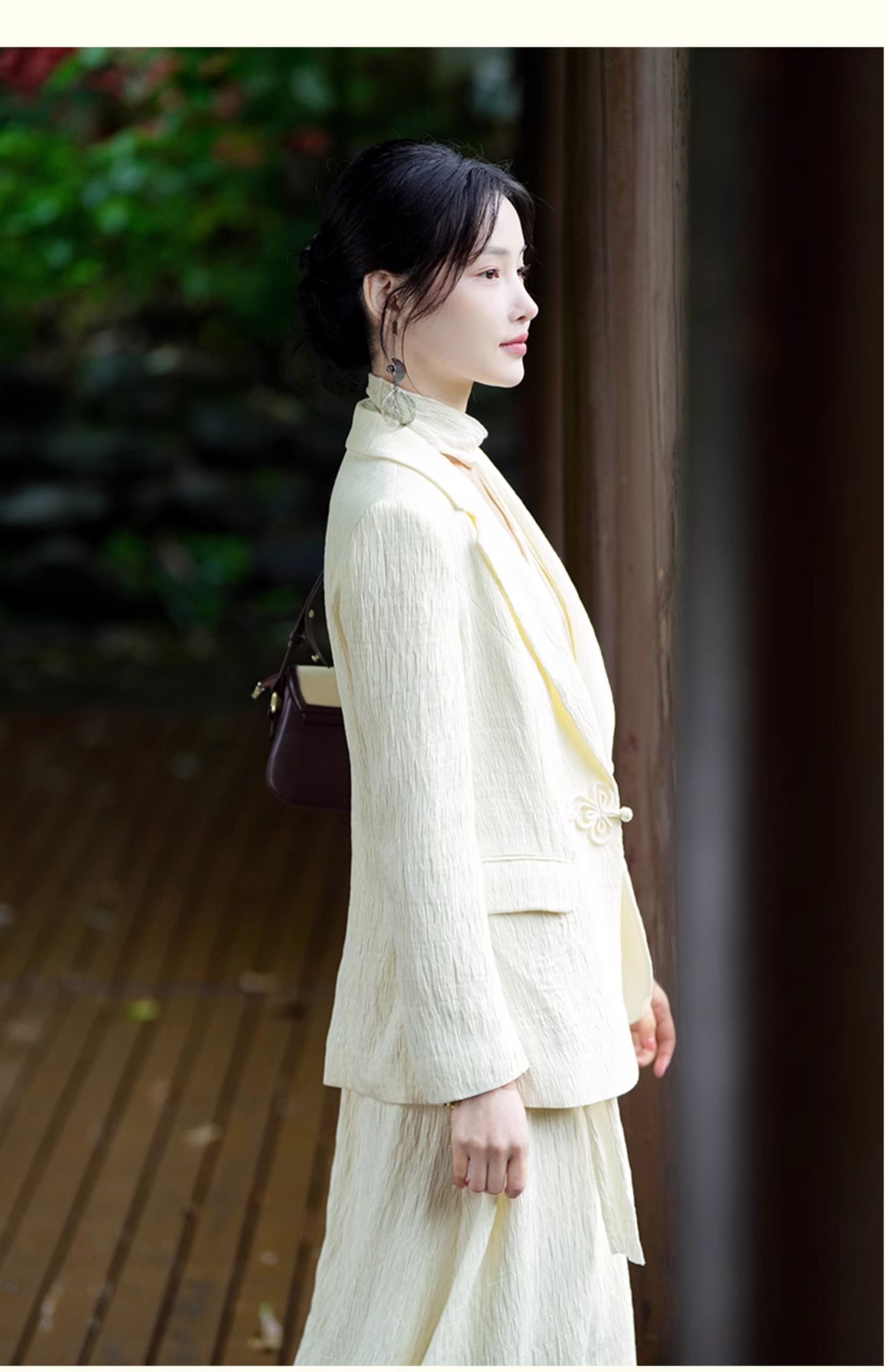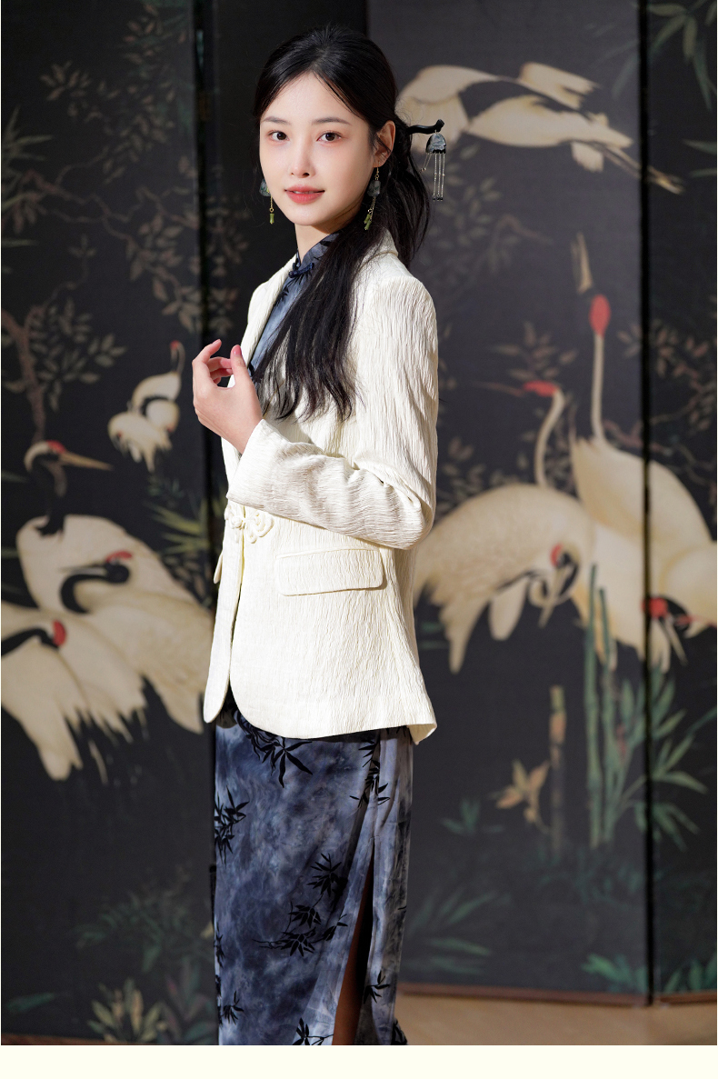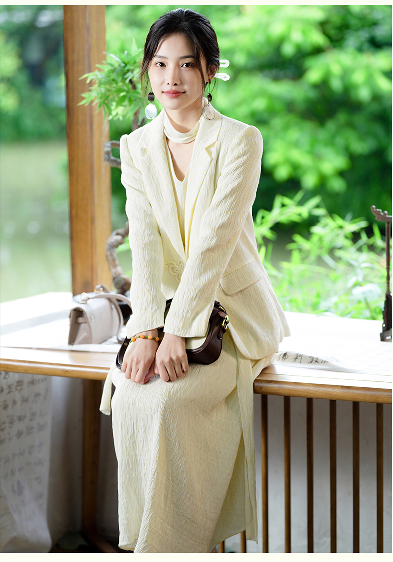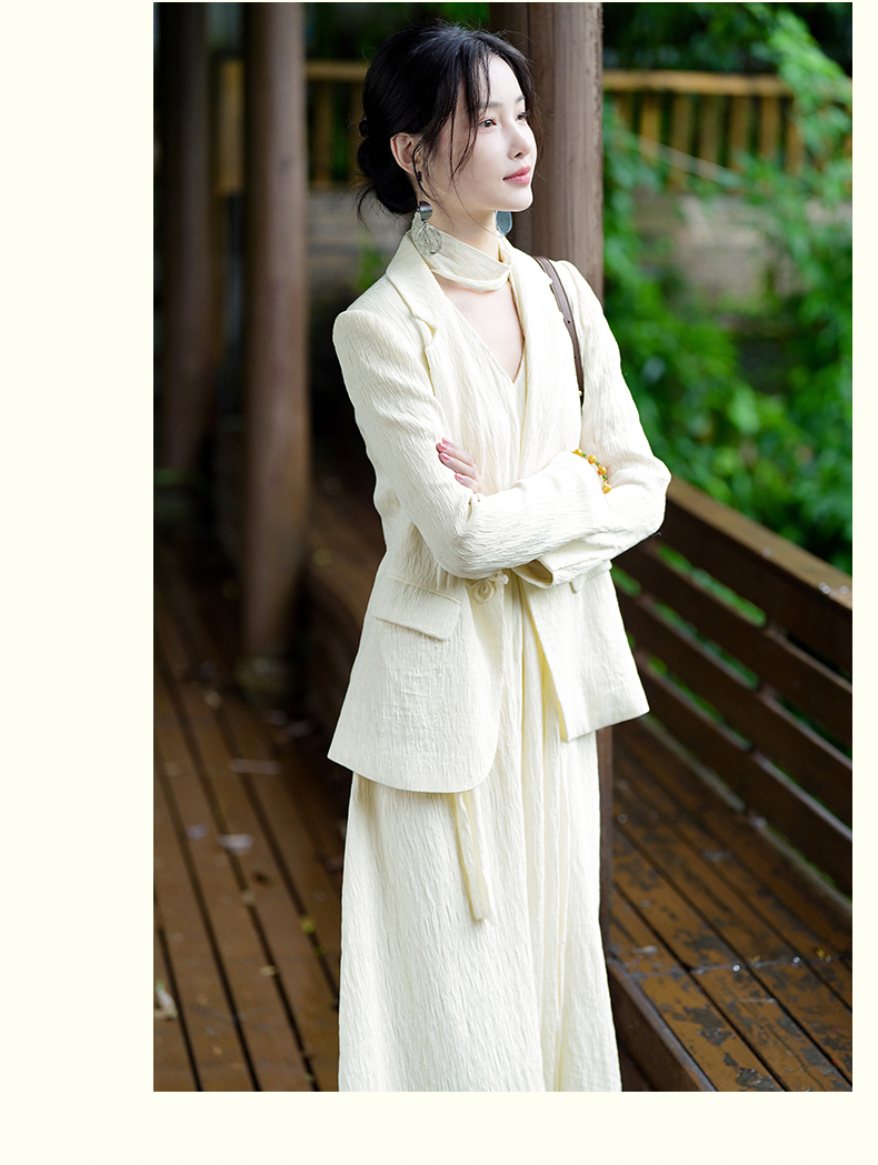 上海逸红颜知微2025年秋季新款立体剪裁褶皱肌理感新中式西装外套