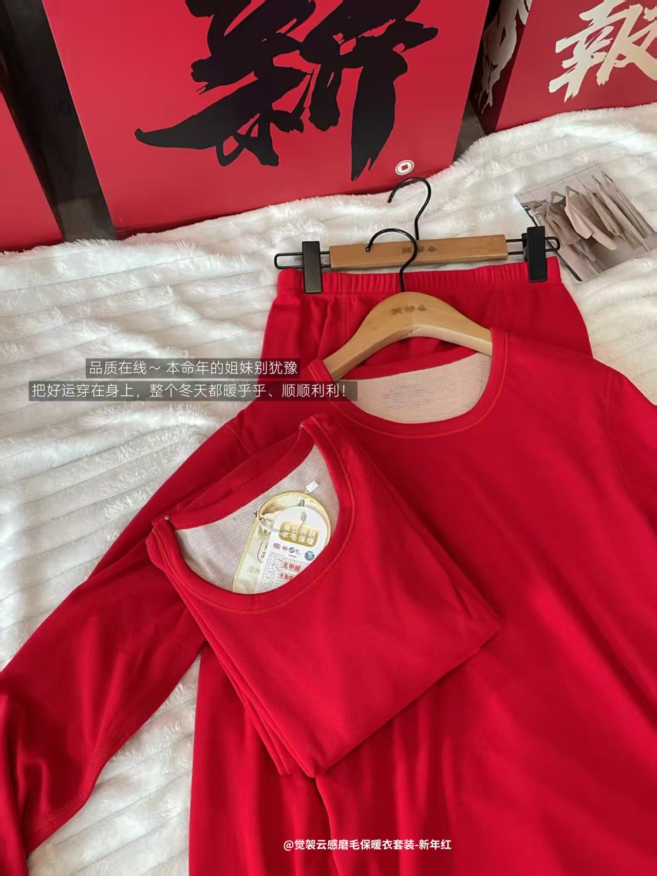 【春节预告:2.14-2.24停发】一套装![觉袈云感磨毛保暖衣套装]一件"开运红"保暖衣,全家暖冬都靠它