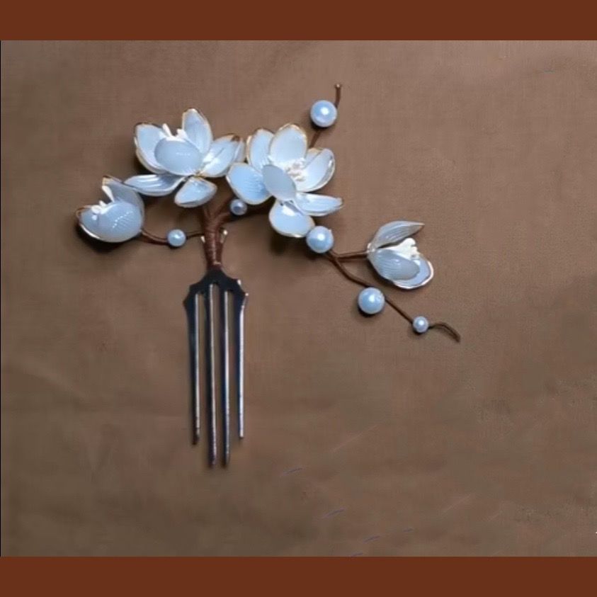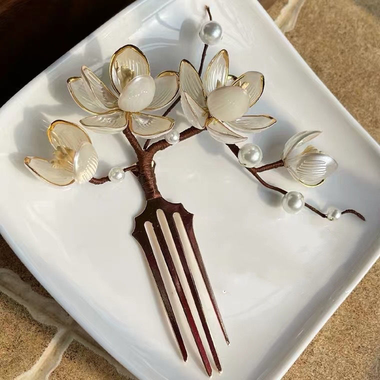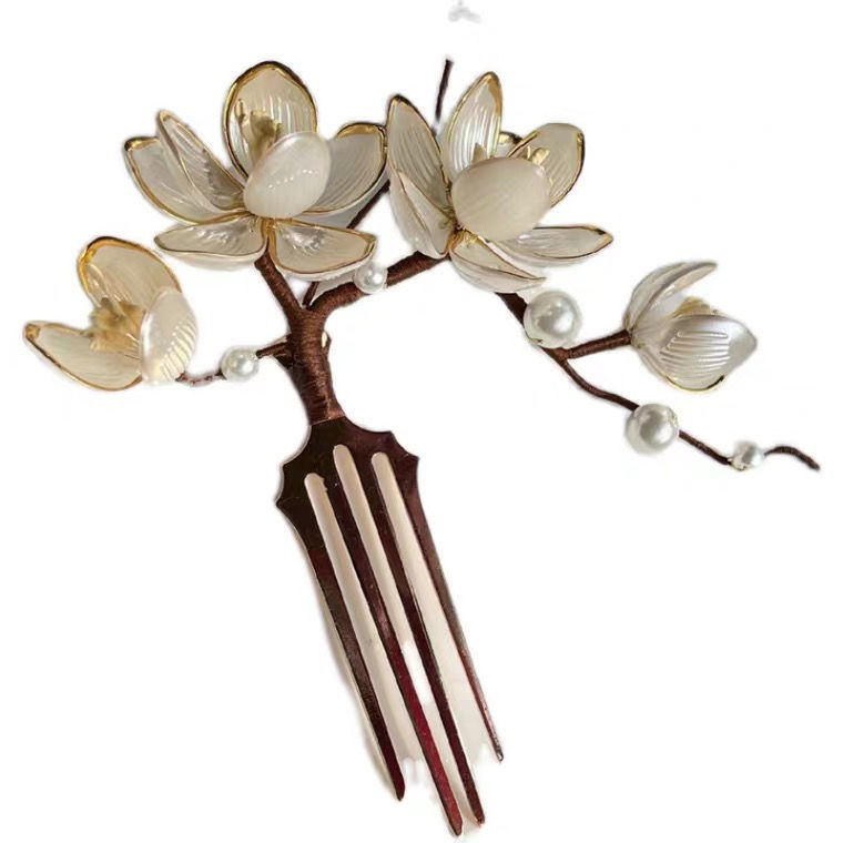 白玉兰发梳 古风发簪发钗发夹发梳u钗木簪汉服古风配饰明制头饰