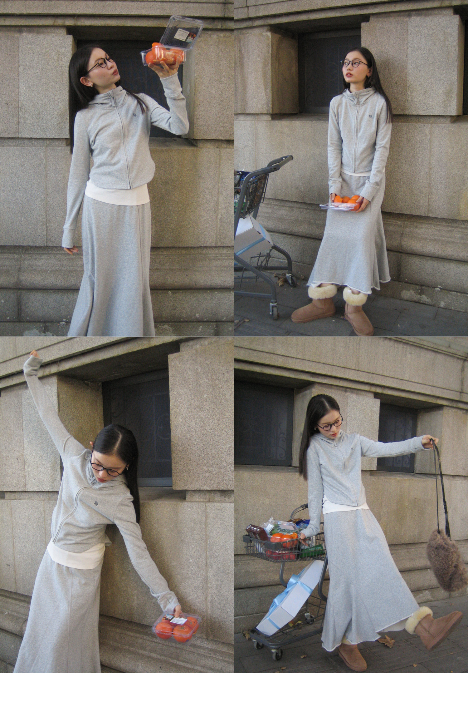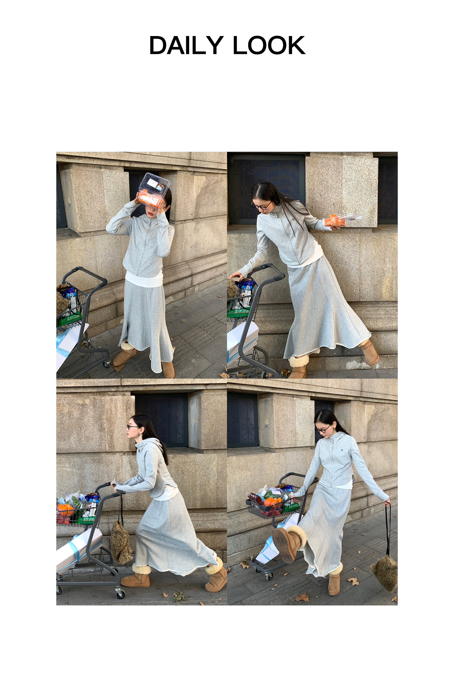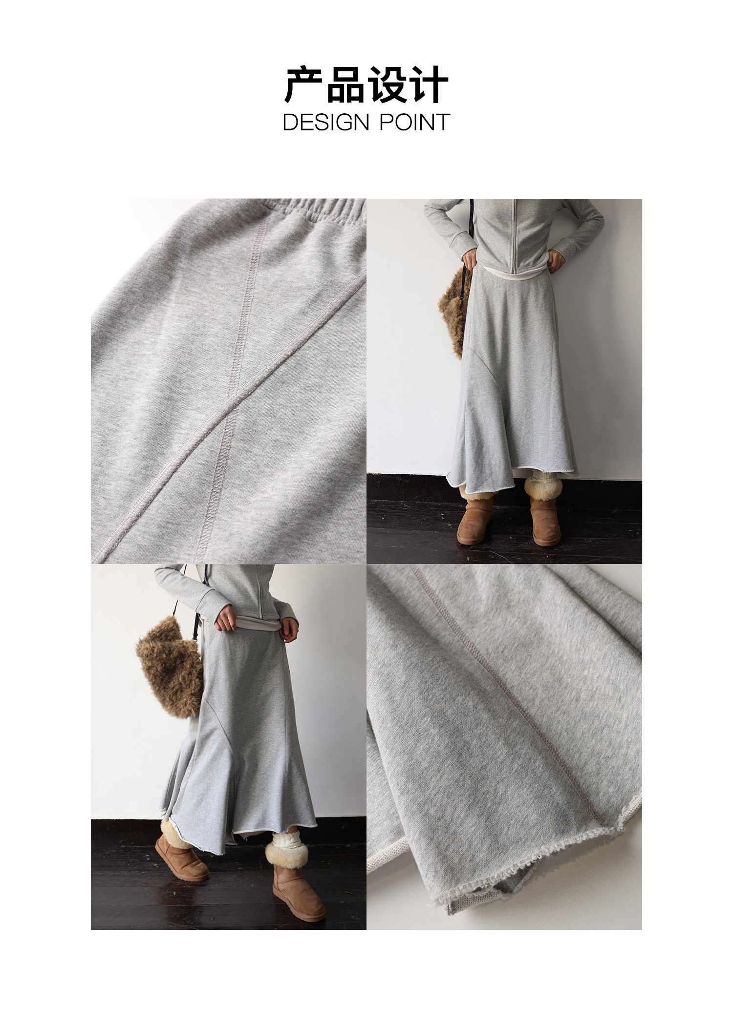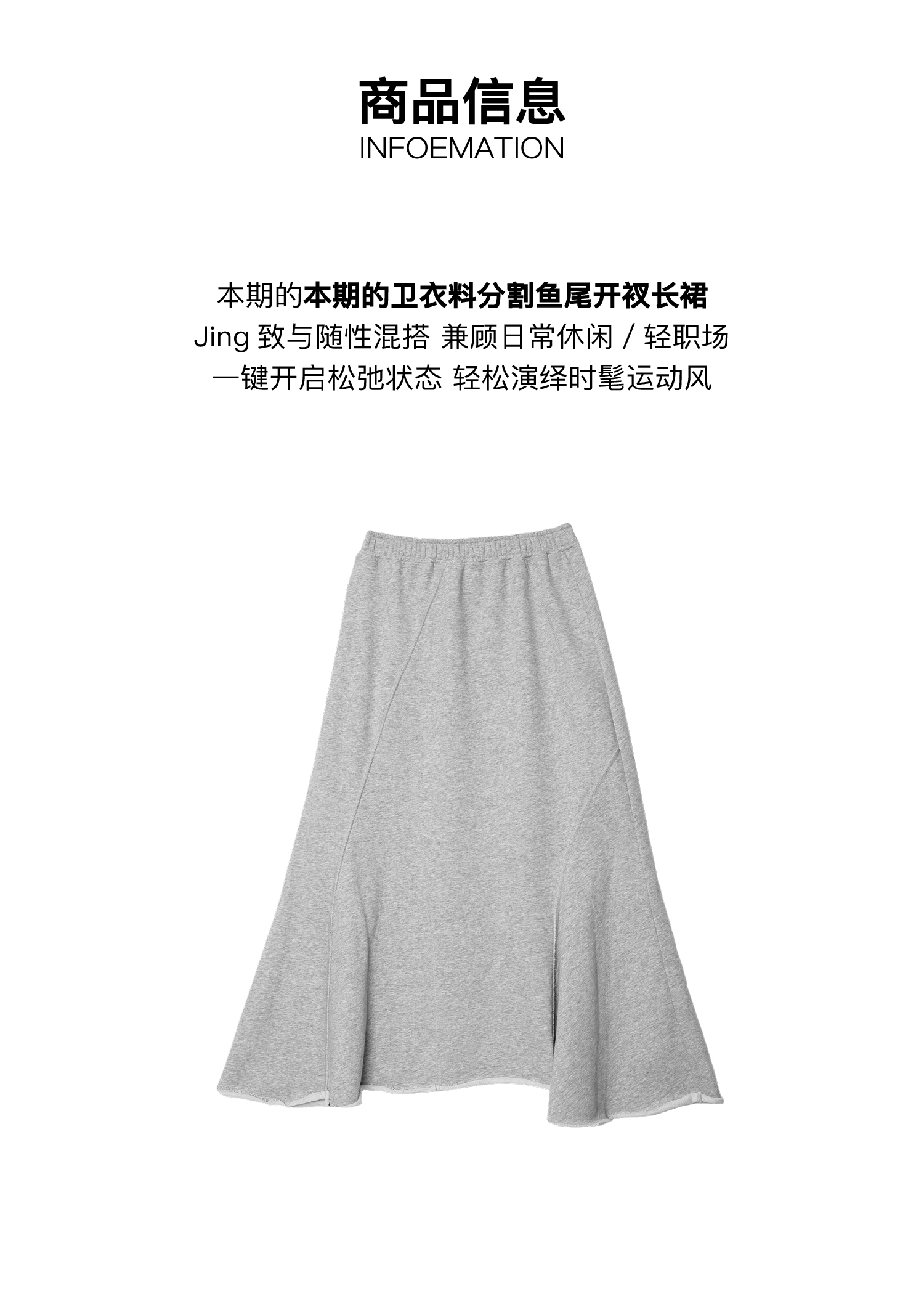 【4折不退换 买六免一】卫衣料分割鱼尾开衩长裙