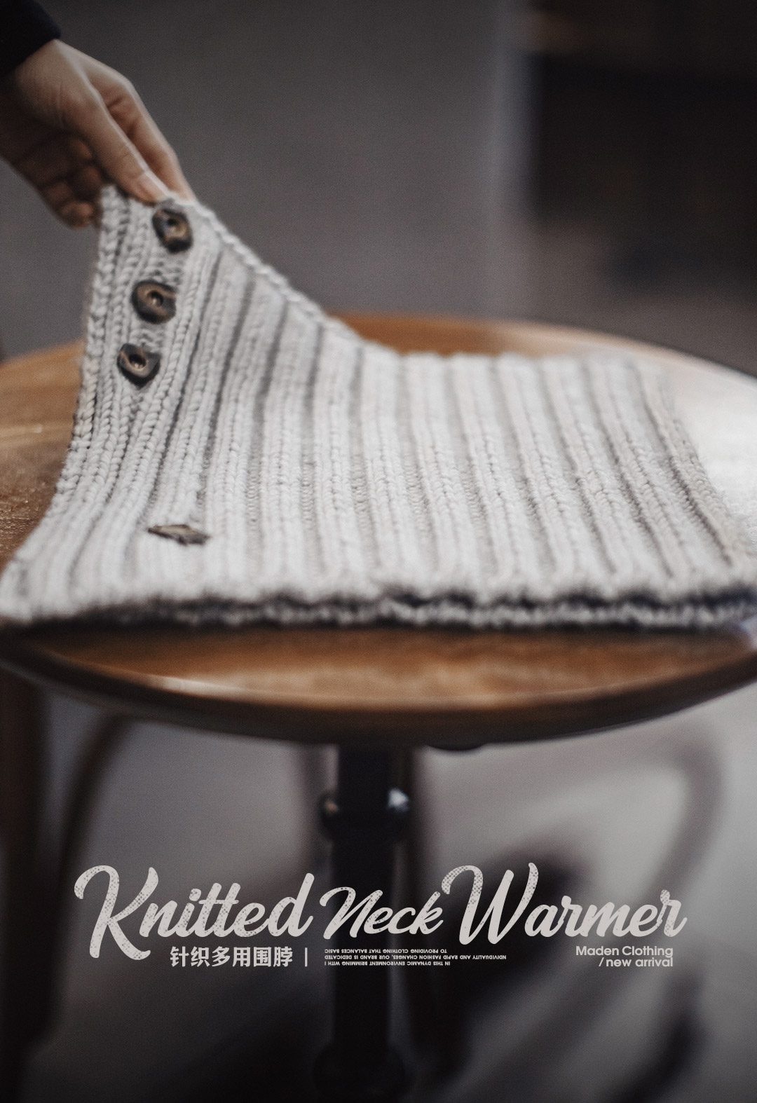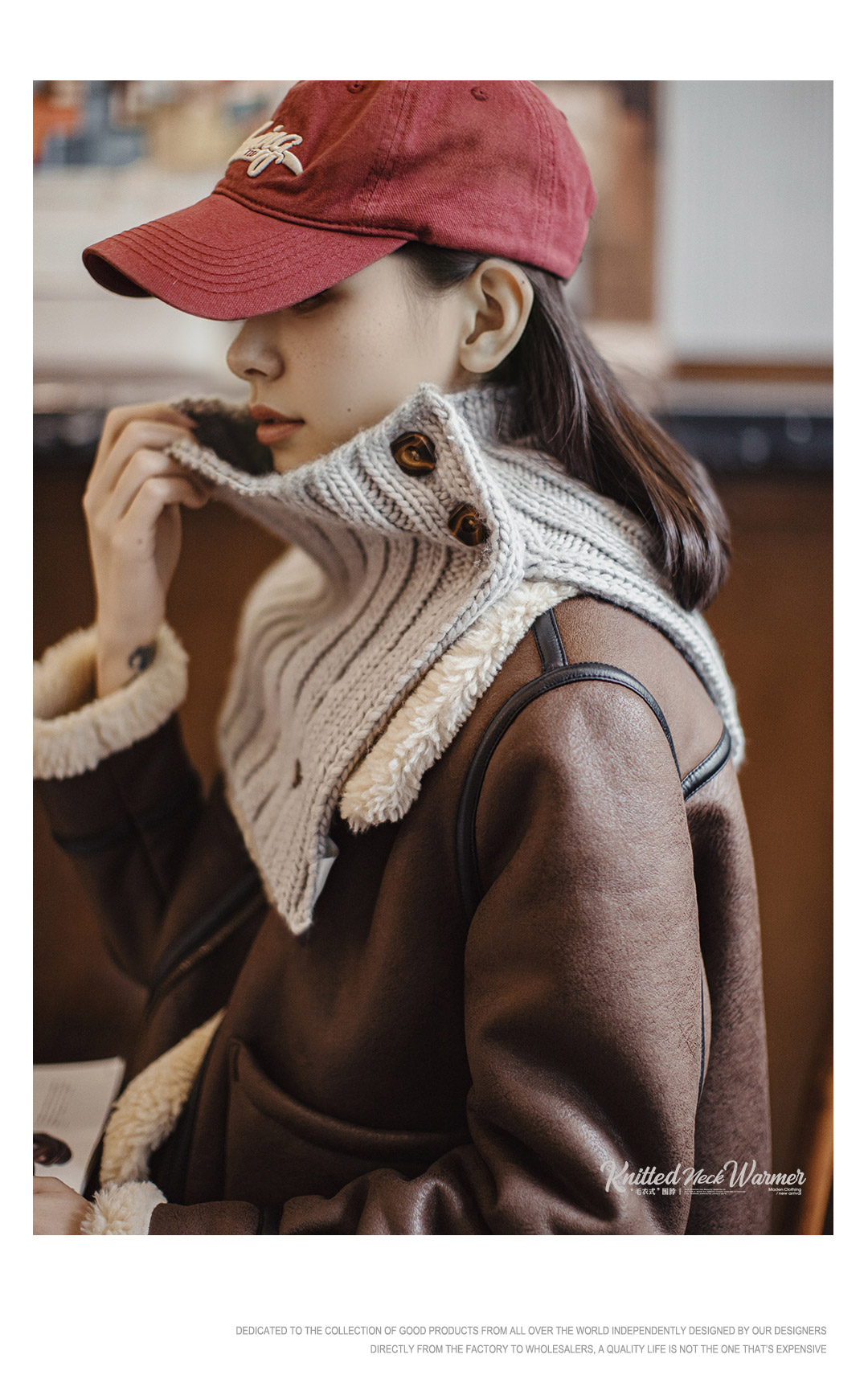 马登浅灰色毛线衣针织短围巾加厚保暖假高领子脖套护颈女士秋冬季