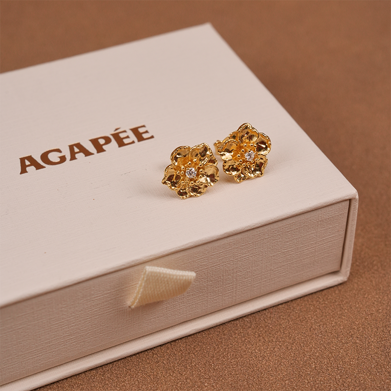 北京仓|Agapee-Zinnia-金色 缎面 耳钉[法国设计师]