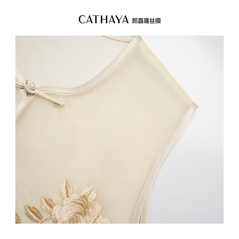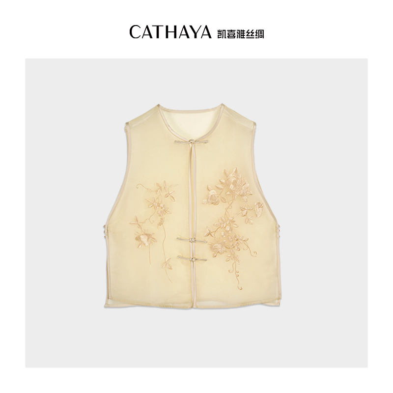 这款新中式小马甲非常适合夏天叠穿,不仅增添了层次感,而且不会让人感觉炎热,保持了清爽的感觉。包容性很强,能够很好地修饰身材的不足,让人穿着更加自信。牡丹绣花和中式包扣的加入,四周边做的滚条设计,更是将整件衣服做成了一个单独的纹样,突出了富贵中国气韵。