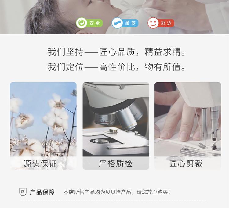 - 贝贝怡专注0-6岁婴幼儿服饰,坚持安全、柔软、舒适的产品理念,为千万中国家庭提供超高品质、安全可靠的婴幼儿服饰产品,妈妈放心,宝宝开心!