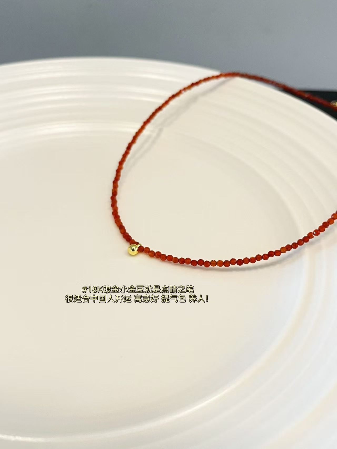 天然优质红玛瑙小米珠+18K镀金小金豆!