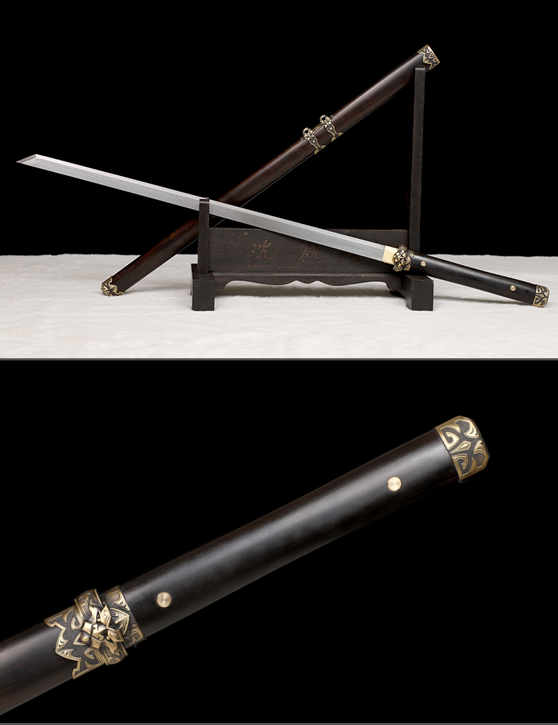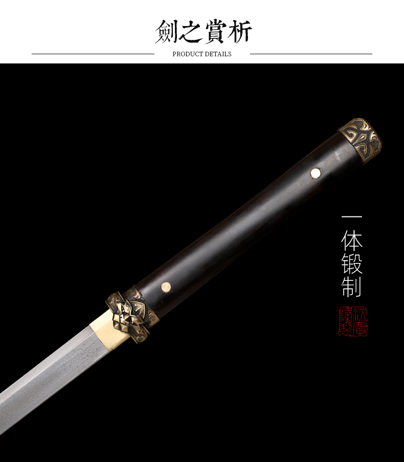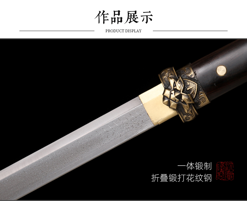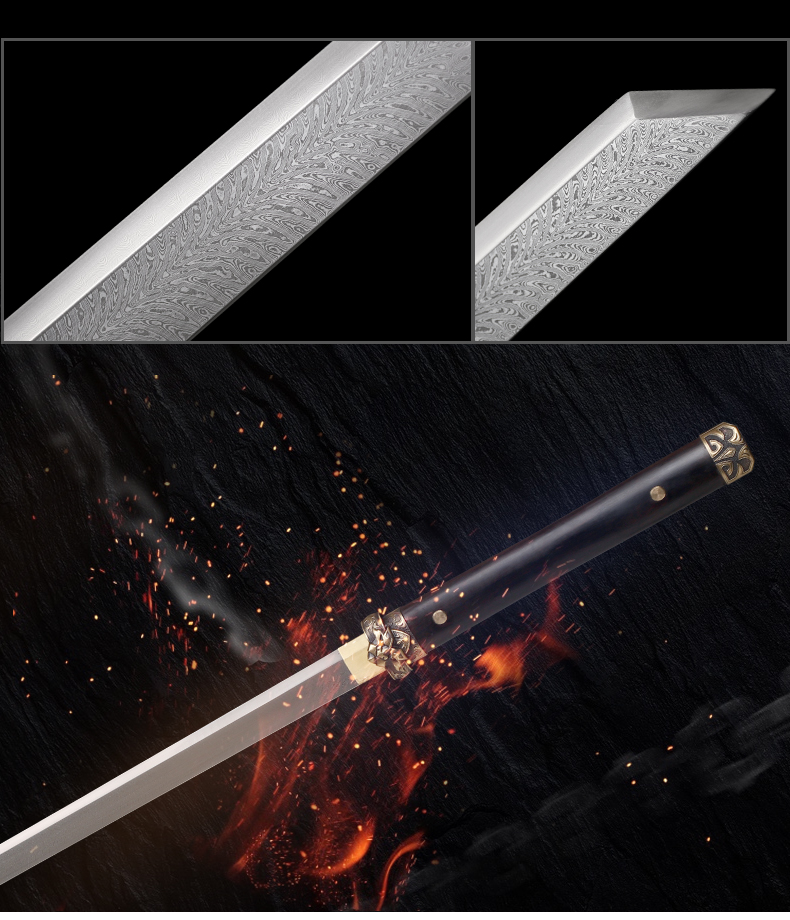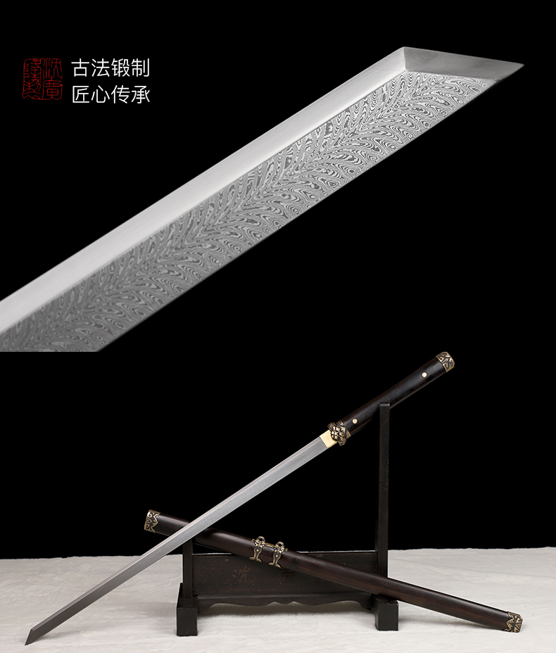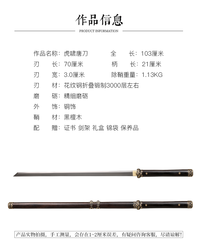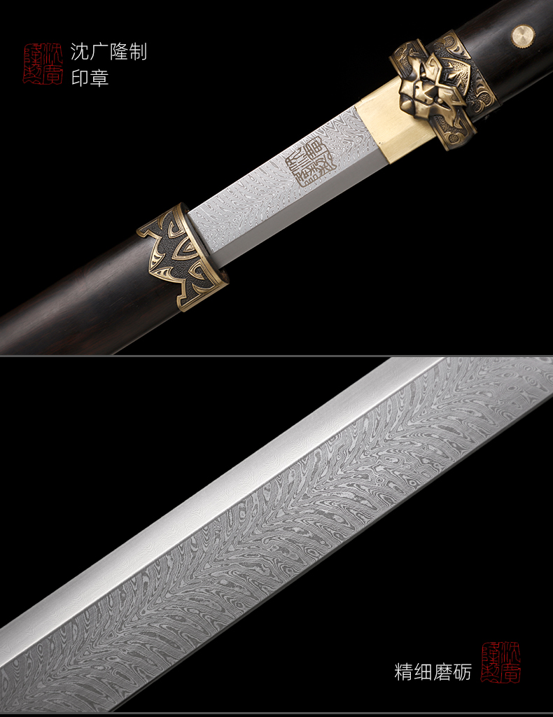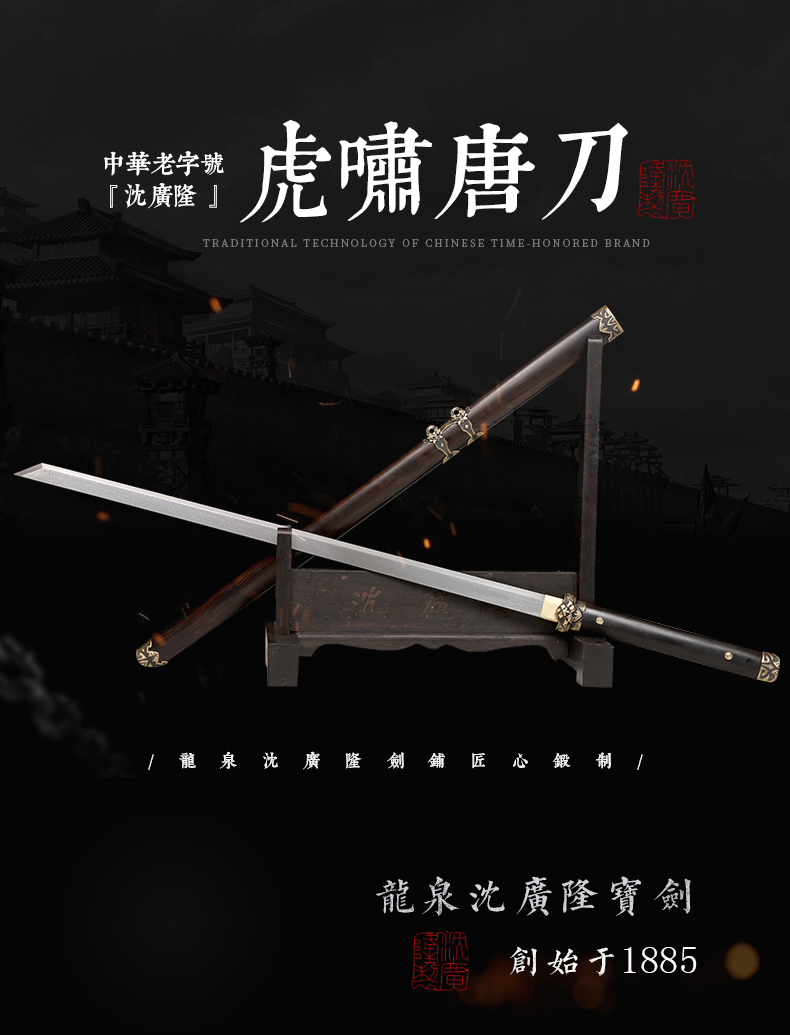 虎啸唐刀 唐横刀剑 龙泉沈广隆宝剑 传统刀剑 手工刀剑 花纹钢 未开刃