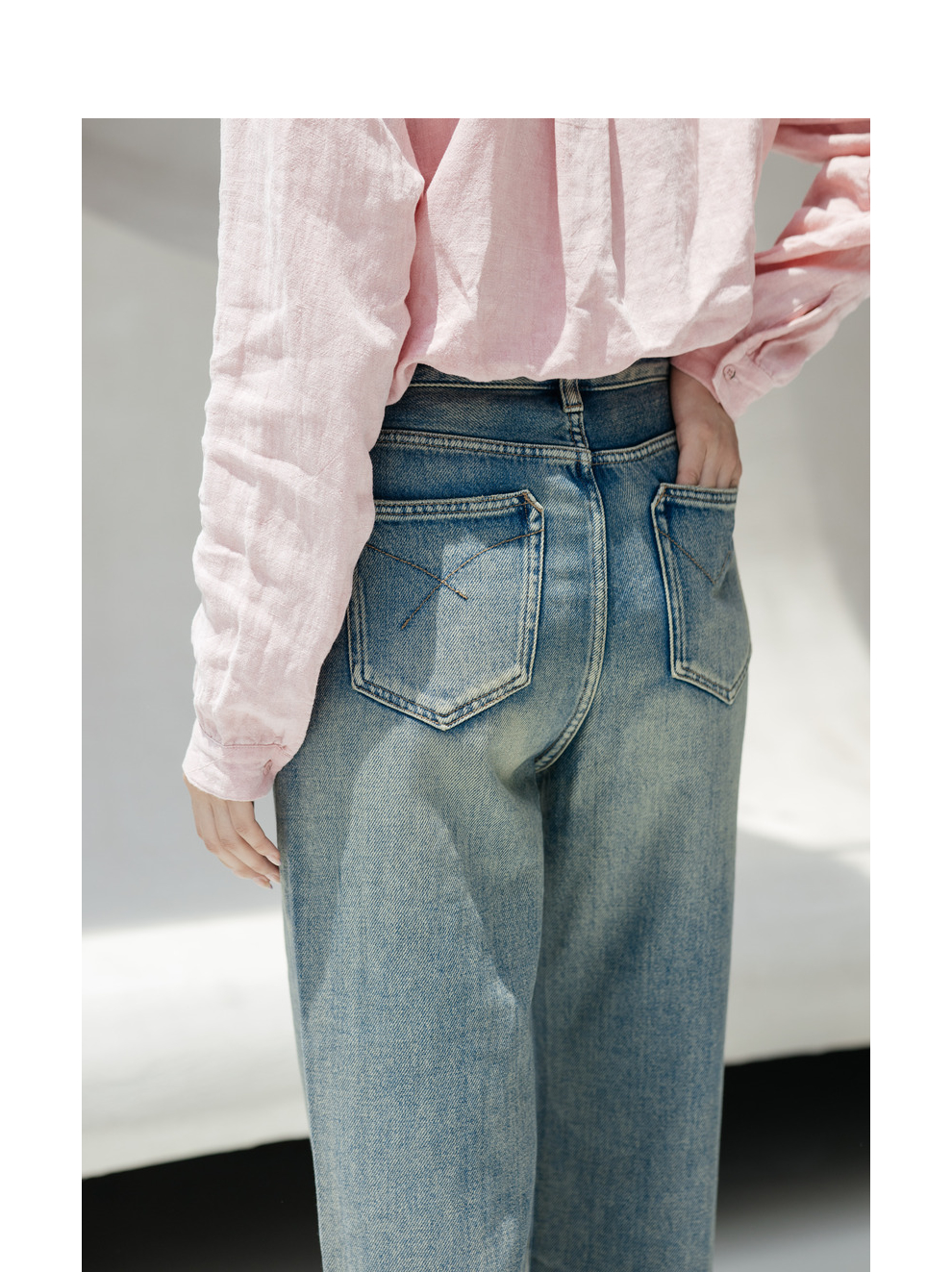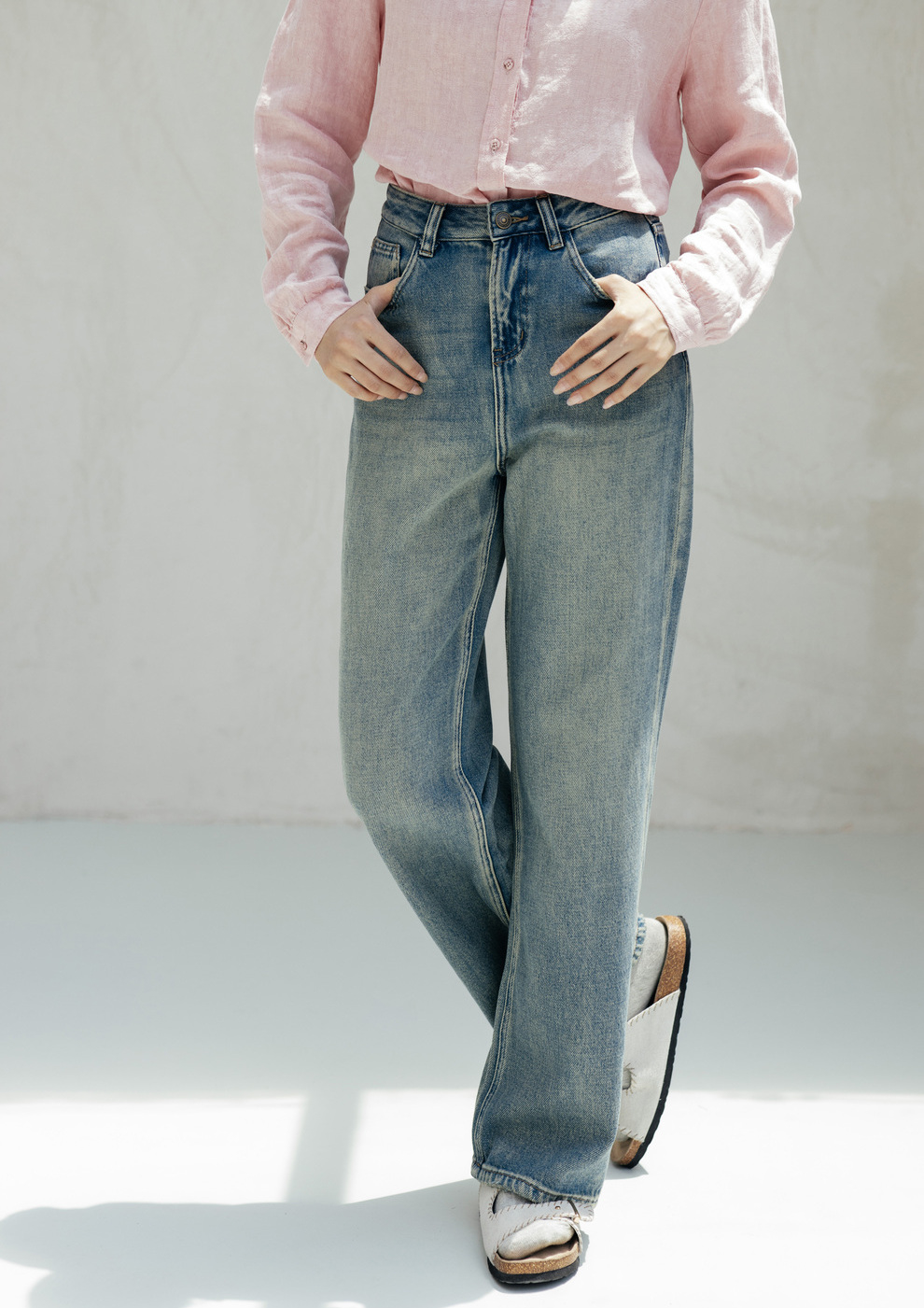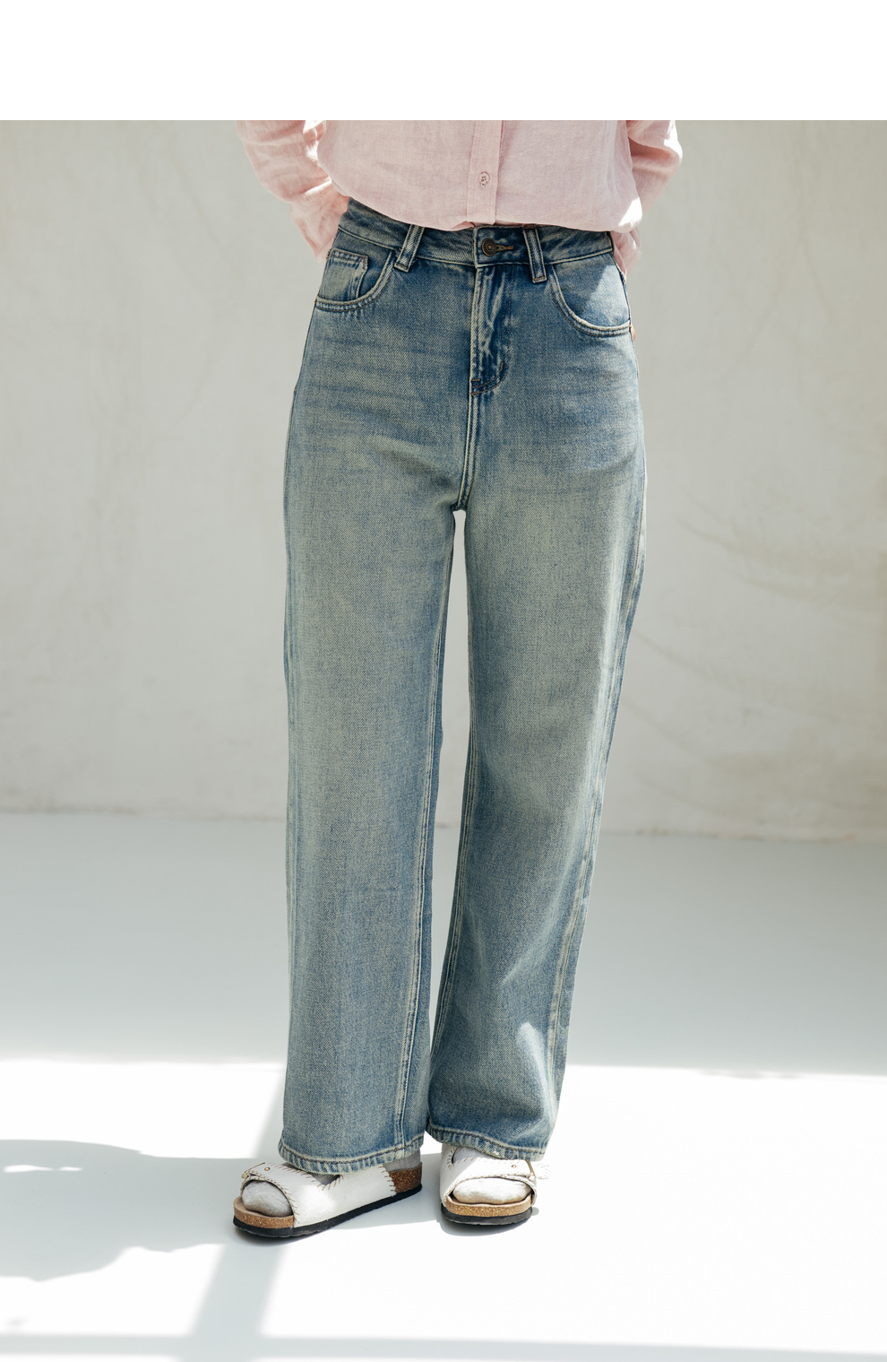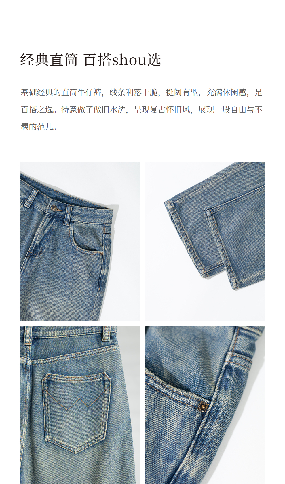 绽放旅行女装681朵/早秋撞色做旧显瘦*直筒复古百搭牛仔长裤