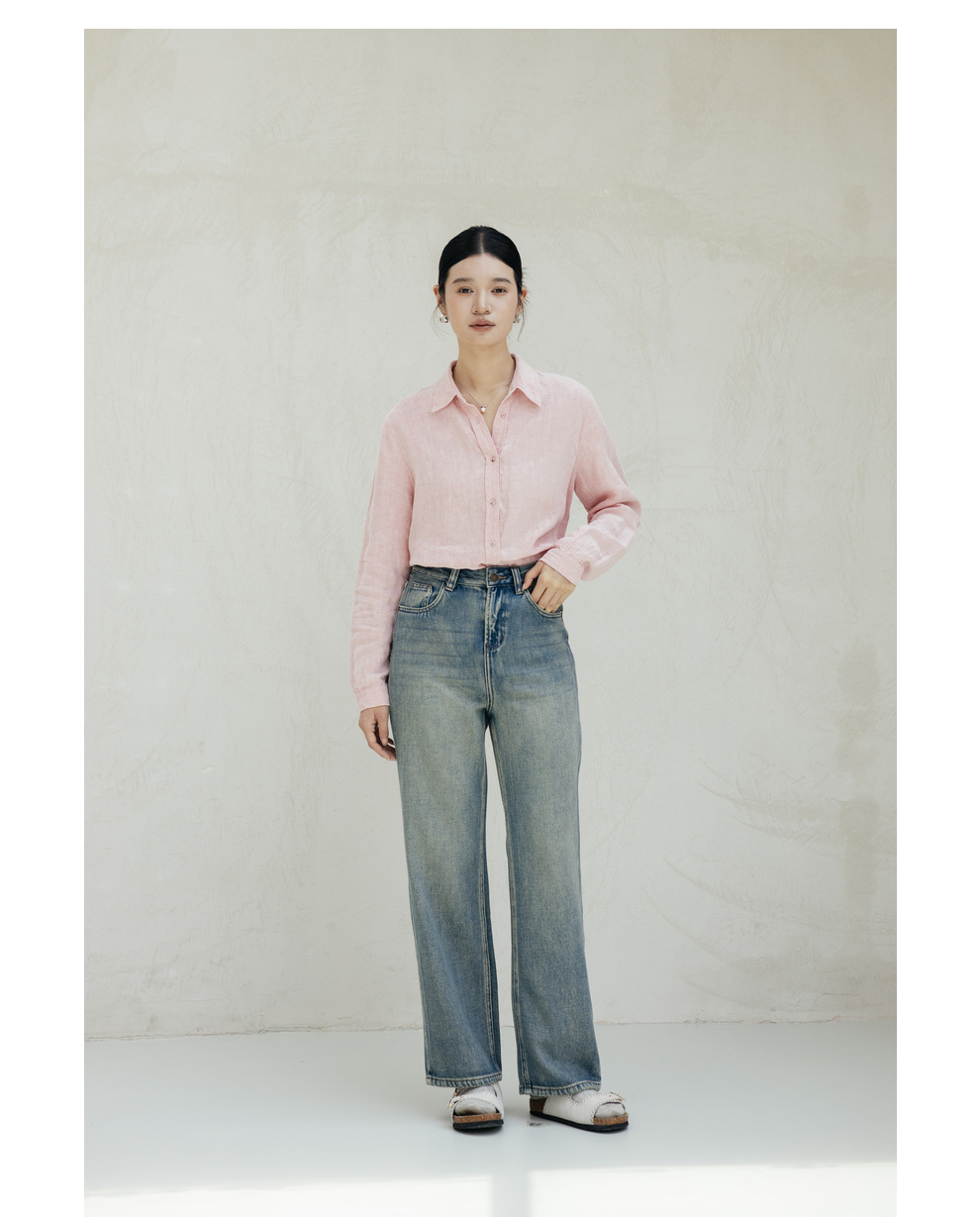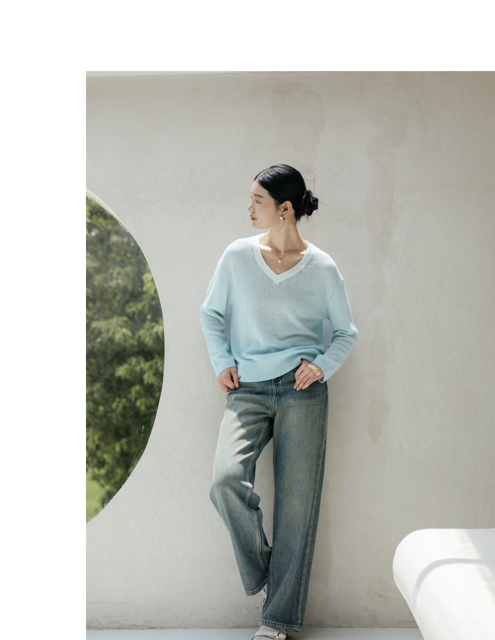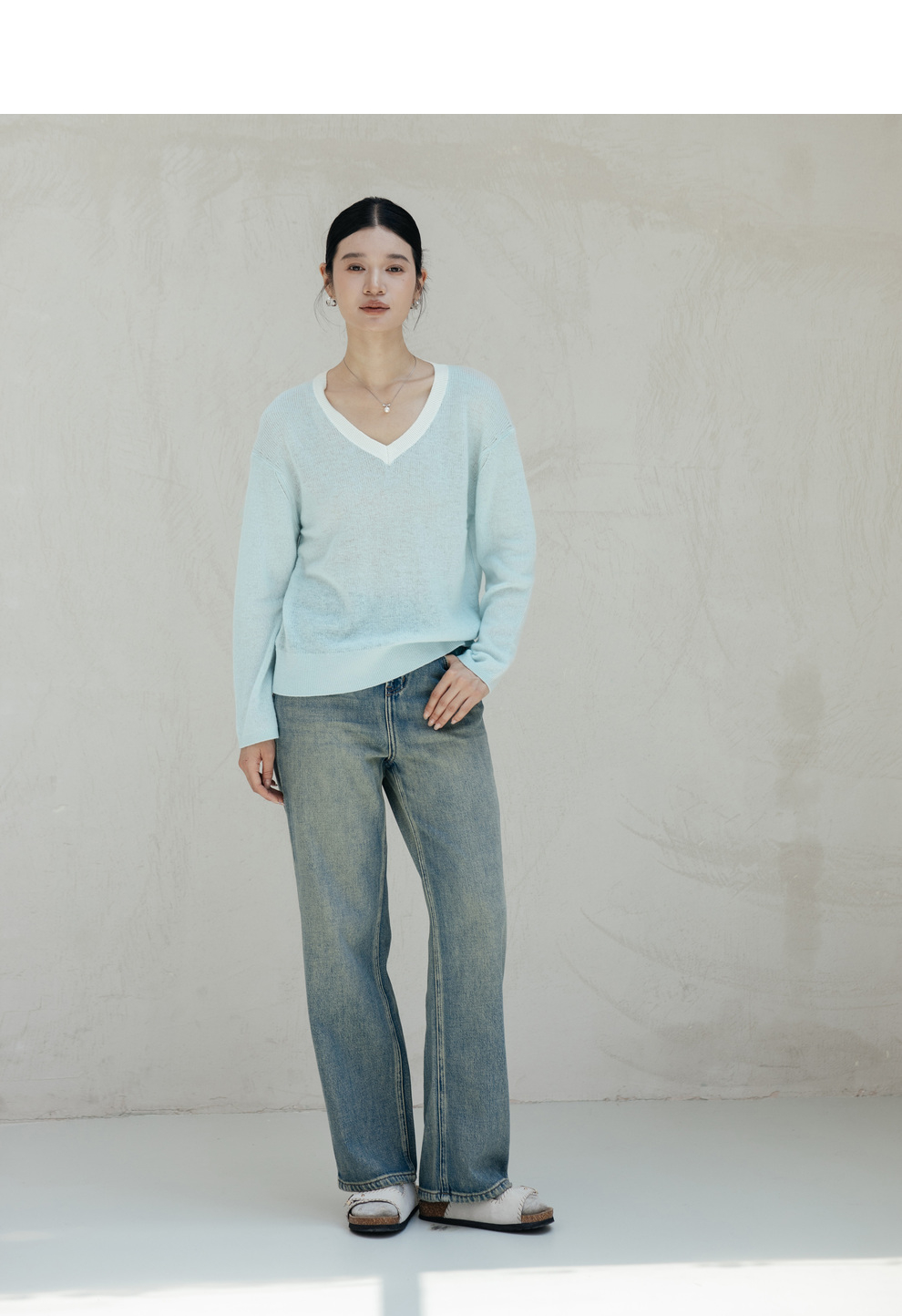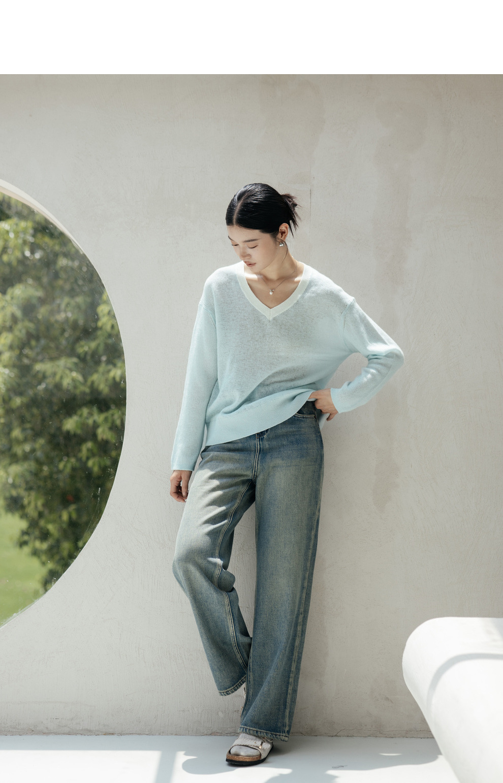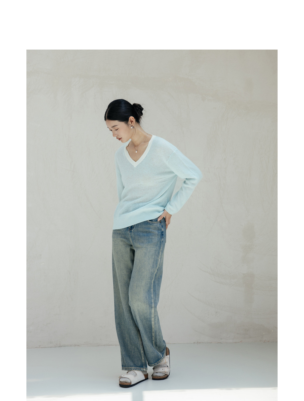 绽放旅行女装681朵/早秋撞色做旧显瘦*直筒复古百搭牛仔长裤