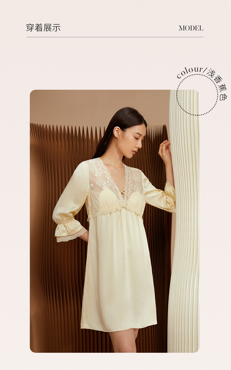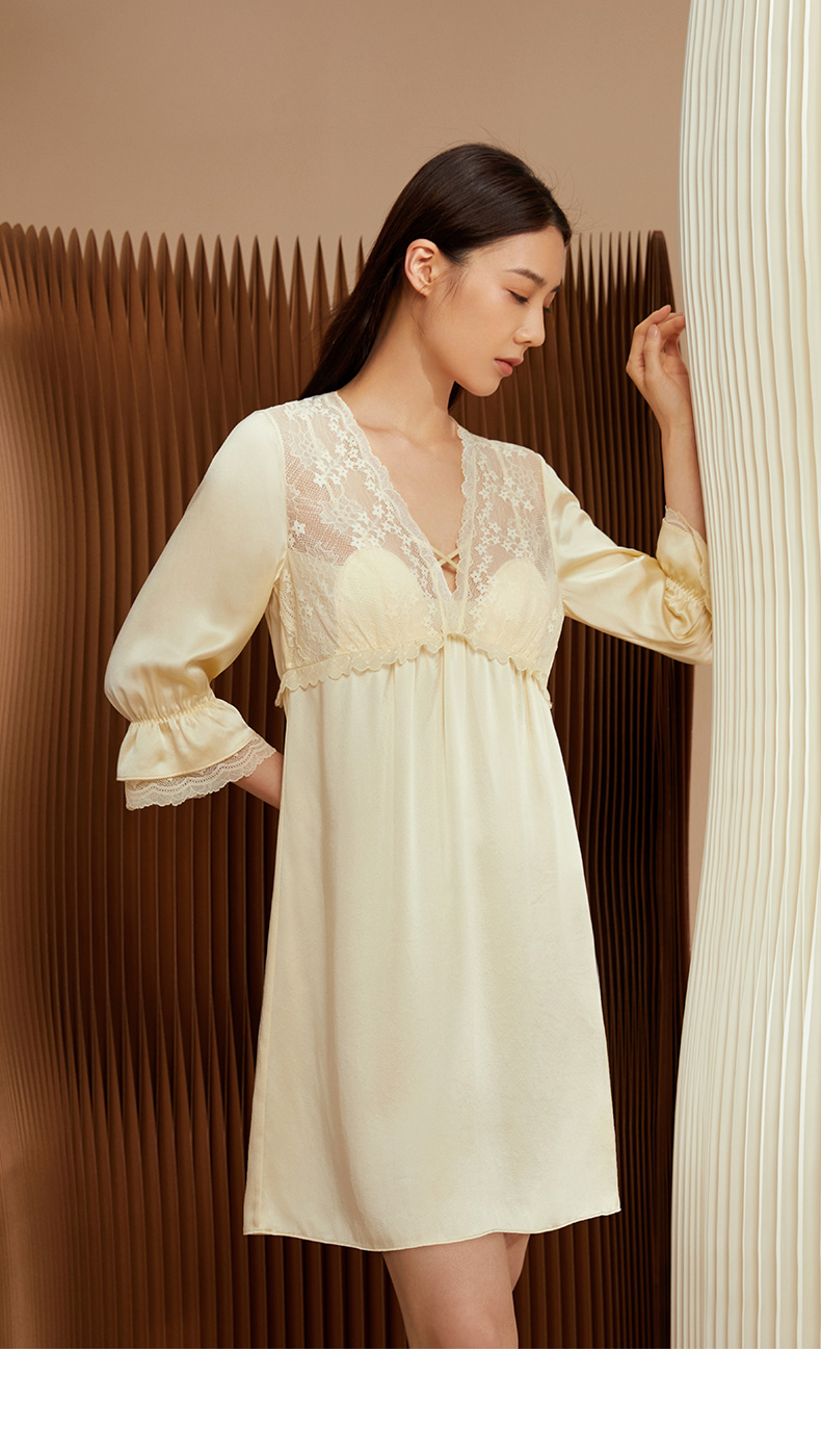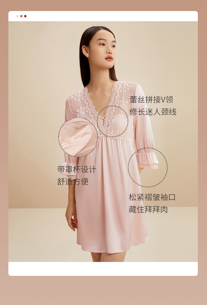 金三塔100%桑蚕丝舒适免穿文胸女士真丝bra-in带罩杯睡裙家居服 YSFCC303