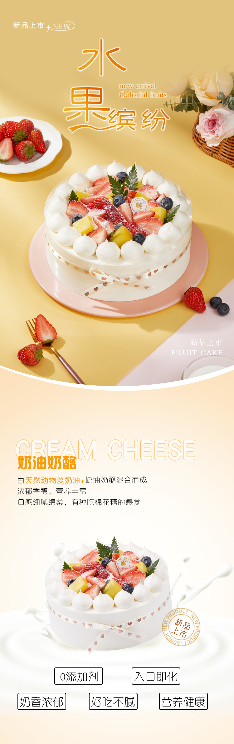 水果缤纷2磅乳酪奶油蛋糕