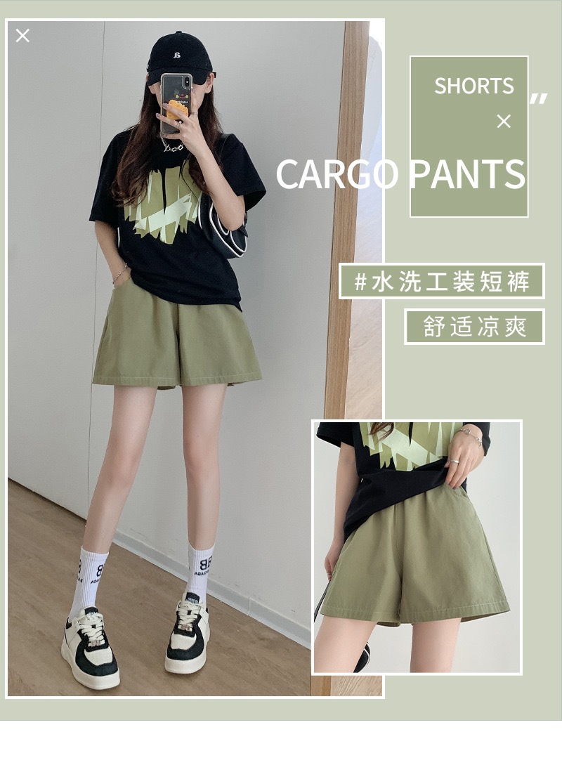 【潮酷百搭工装短裤 尽享舒适凉爽】夏季休闲工装A字短裤女水洗棉工装裤宽松高腰阔腿女百搭三分阔腿