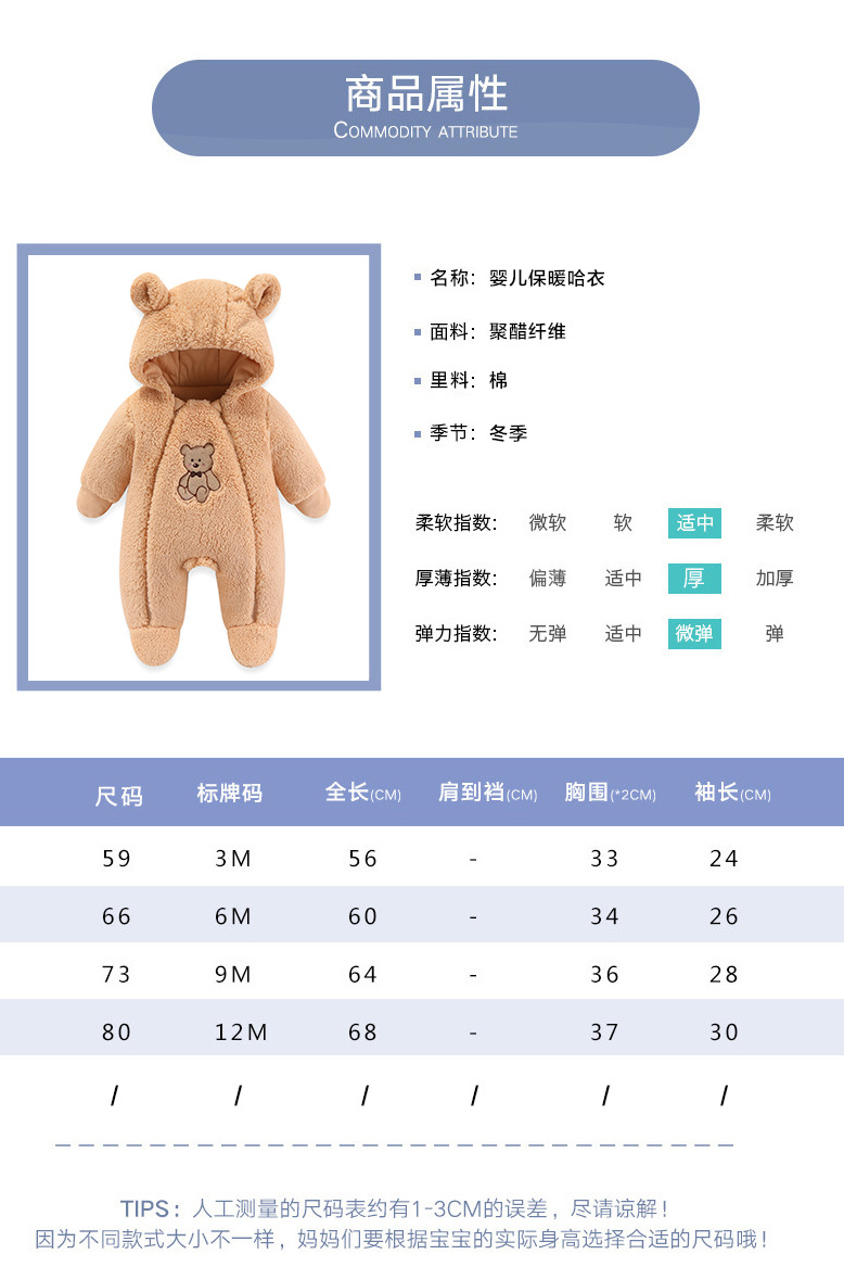 【婴儿可爱加厚保暖连体衣】冬装棉衣新生儿宝宝抱衣婴幼儿秋冬装套装外出服