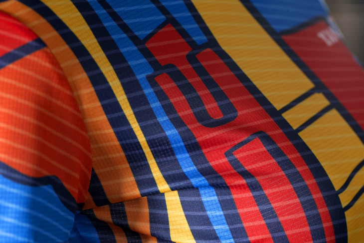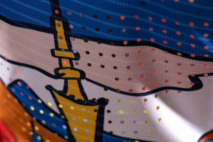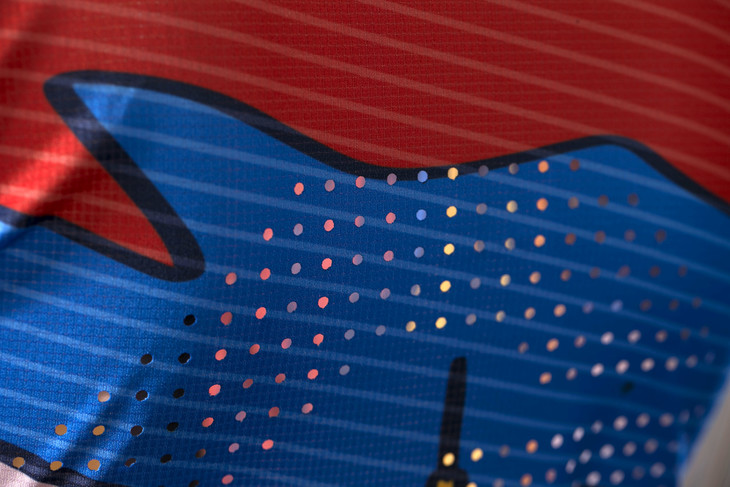 采用数码热转印取代胶印,图案印刷细腻的同时保持面料快干透汽的性能;
