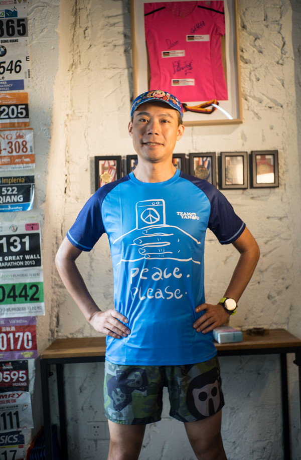 严素跑步TEE,世界和平,男款特价不退换,蓝/黄,轻量 短袖T恤 速干快干 ,严素态度