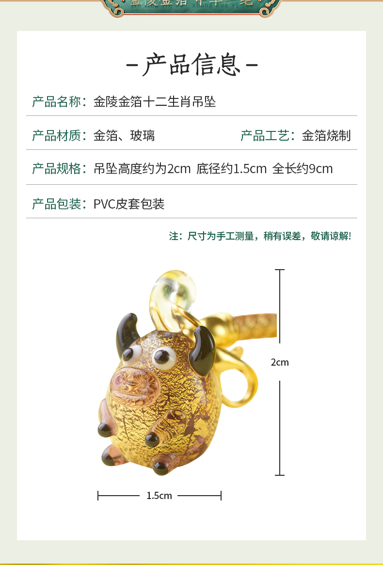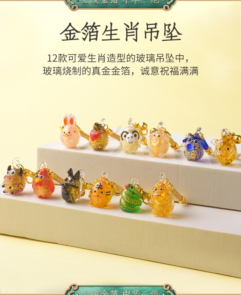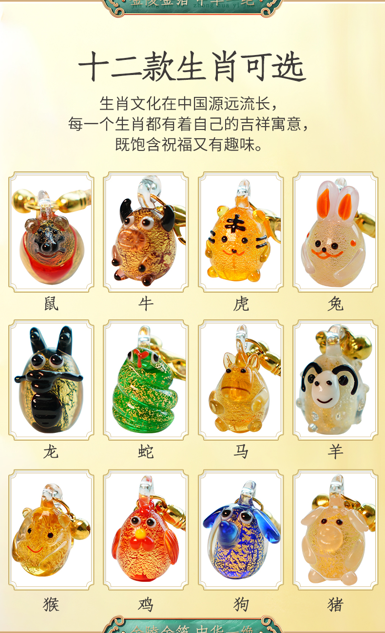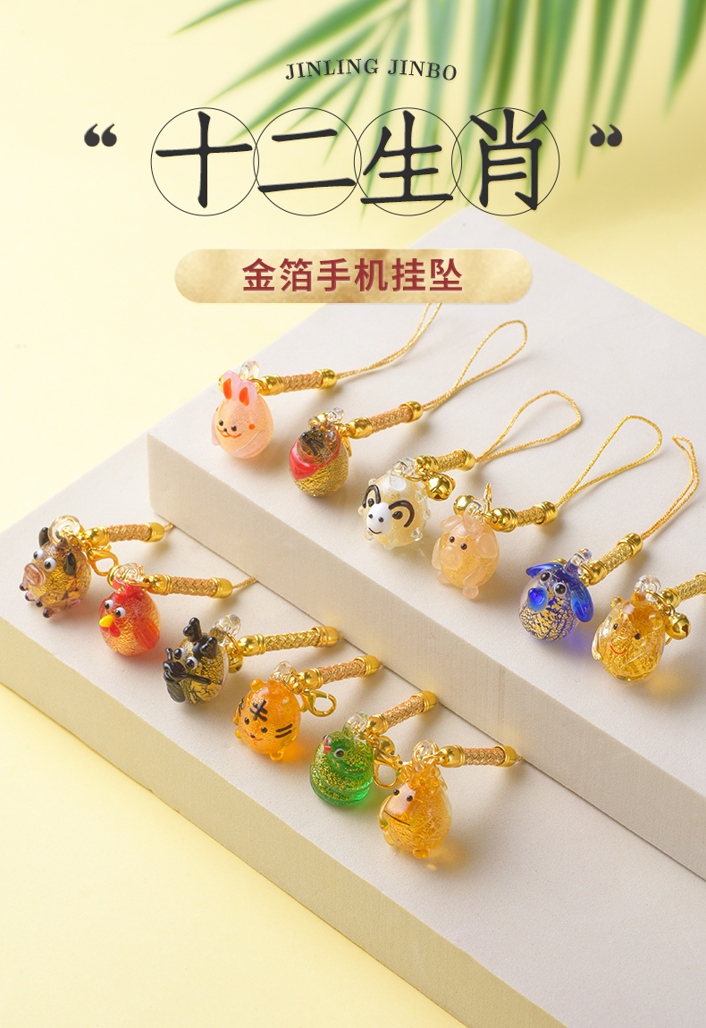 金陵金箔十二生肖钥匙扣挂件手机链书包吊坠汽车公交卡门禁挂饰男女情侣创意手机壳U盘可爱卡通守护神挂绳