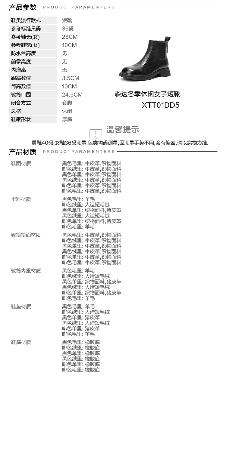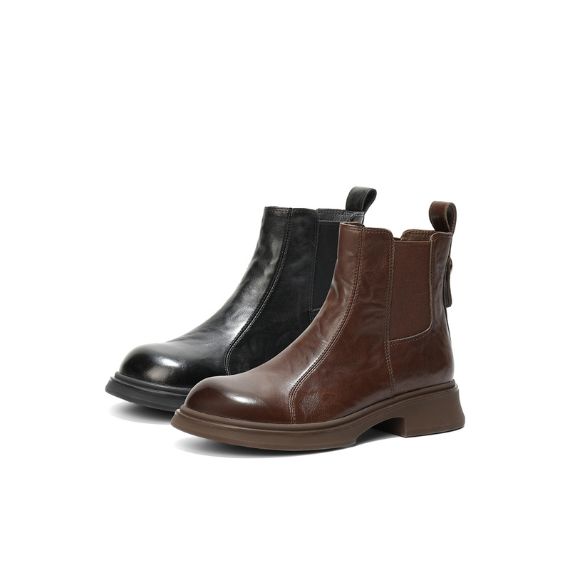 【云粉节】BF楼 森达牛皮切尔西靴2025冬季新款时尚英伦风平跟短靴XTT01吊牌价1199活动价599
