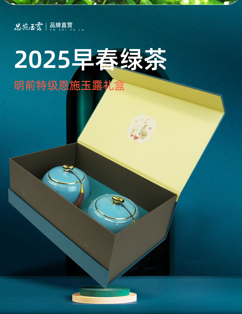 【2026新茶】恩施玉露春茶明前一级精选高山含硒绿茶250g双喜临门双瓷罐瓷罐商务礼盒CM