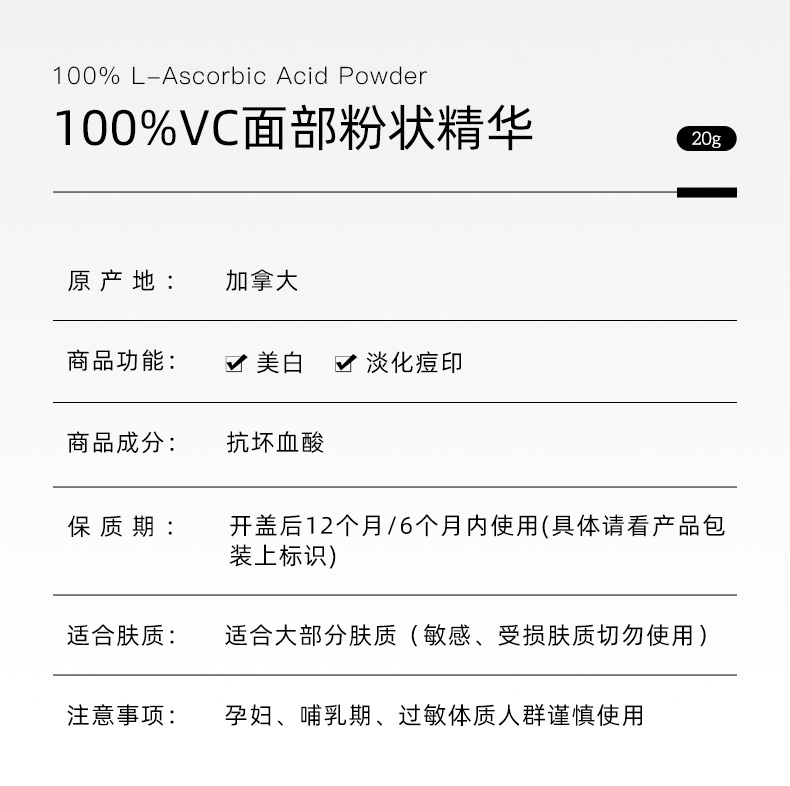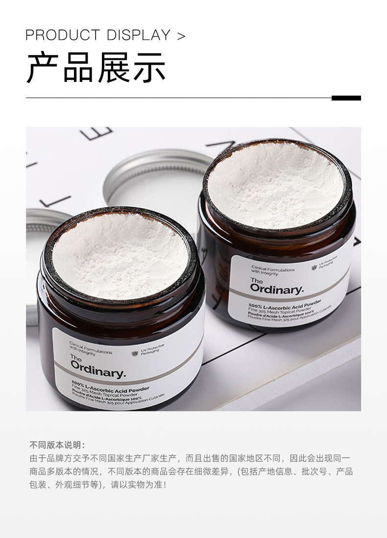 The Ordinary维生素C粉VC粉抗氧化亮白提亮肤色去黄亮肤20g