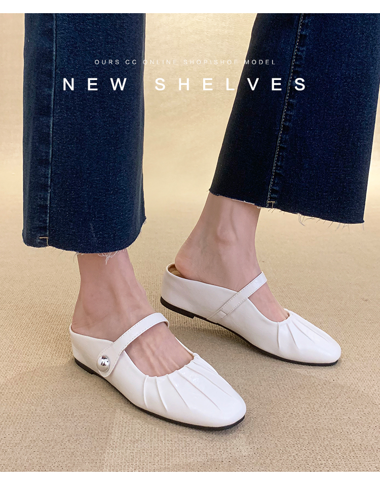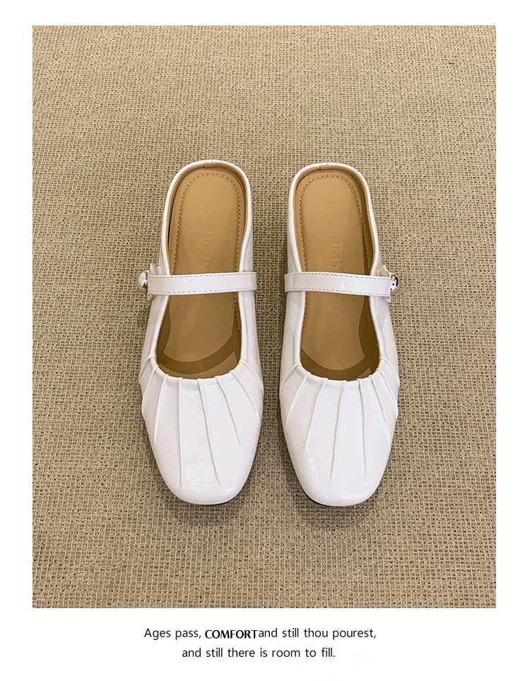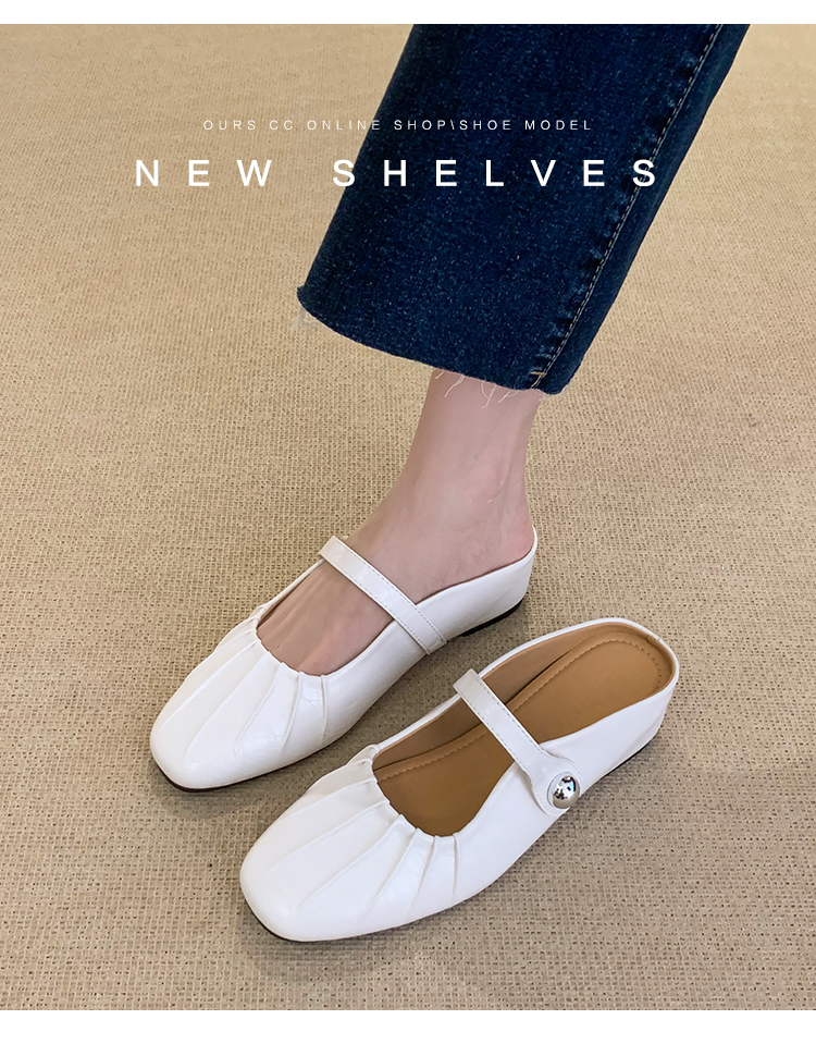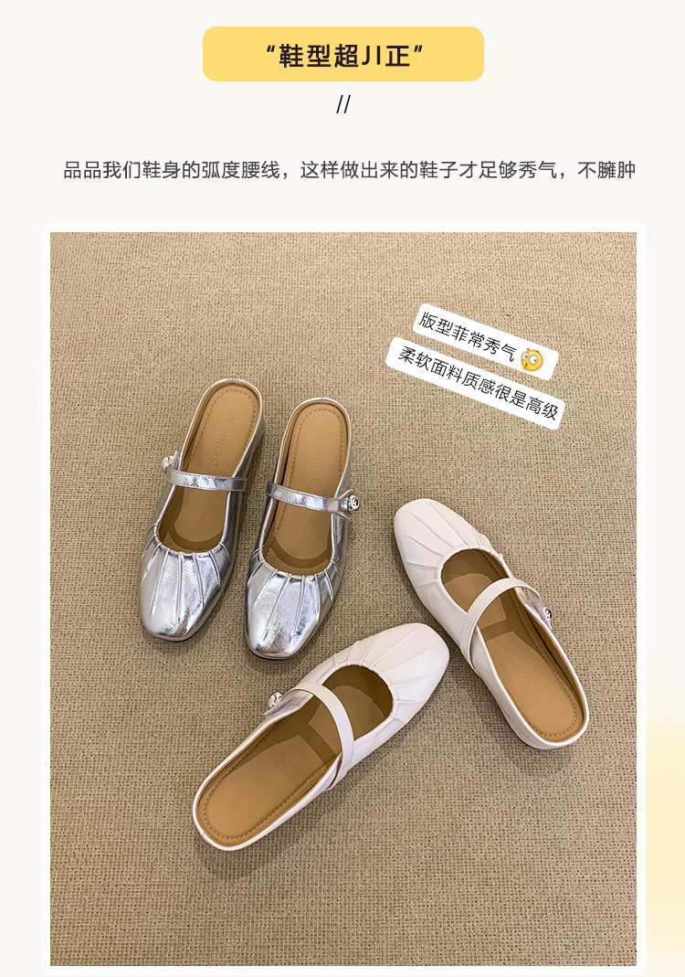 卷卷紫法式百搭一字带半拖鞋 舒适鞋面柔软细腻 隐形跟高 耐磨橡胶底 懒人一脚蹬 百搭显气质