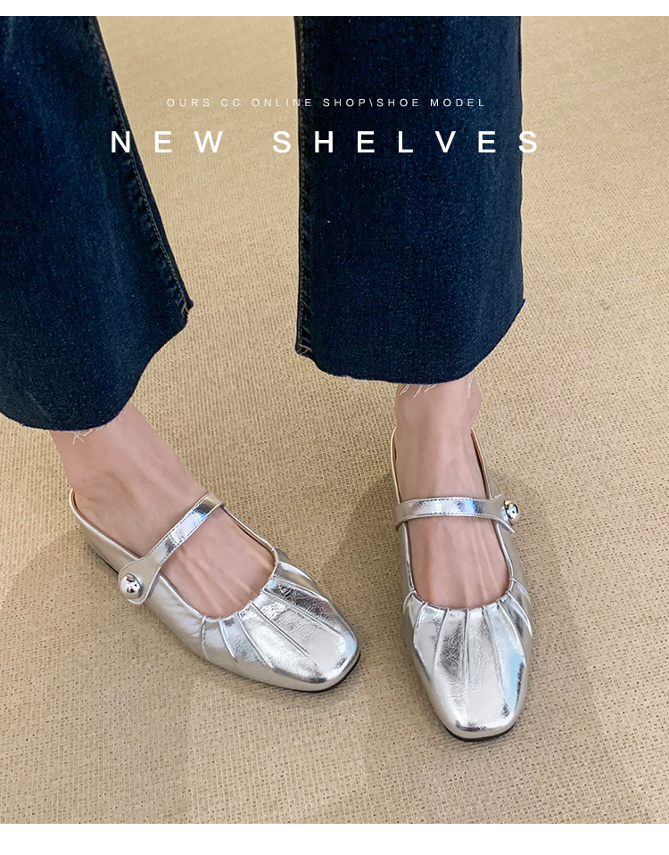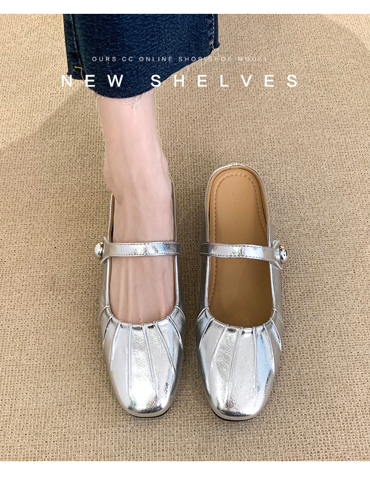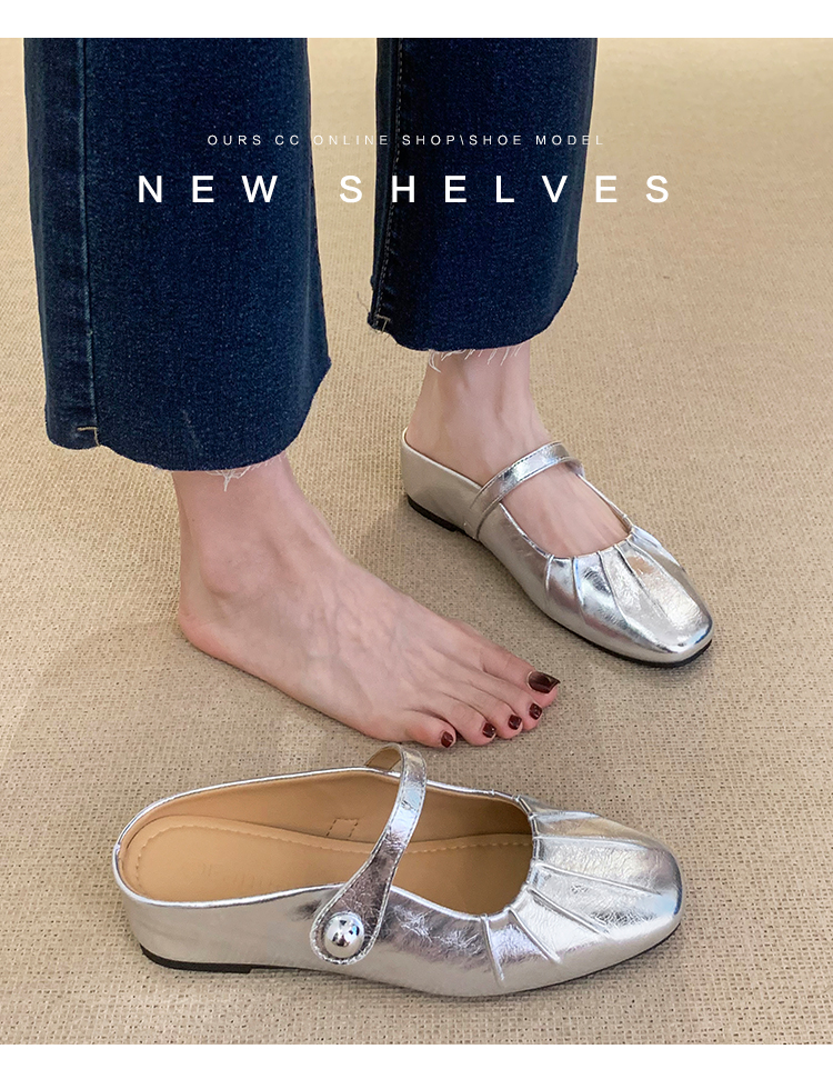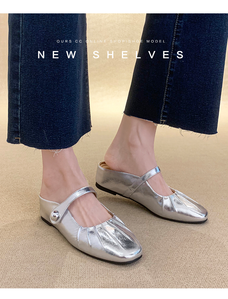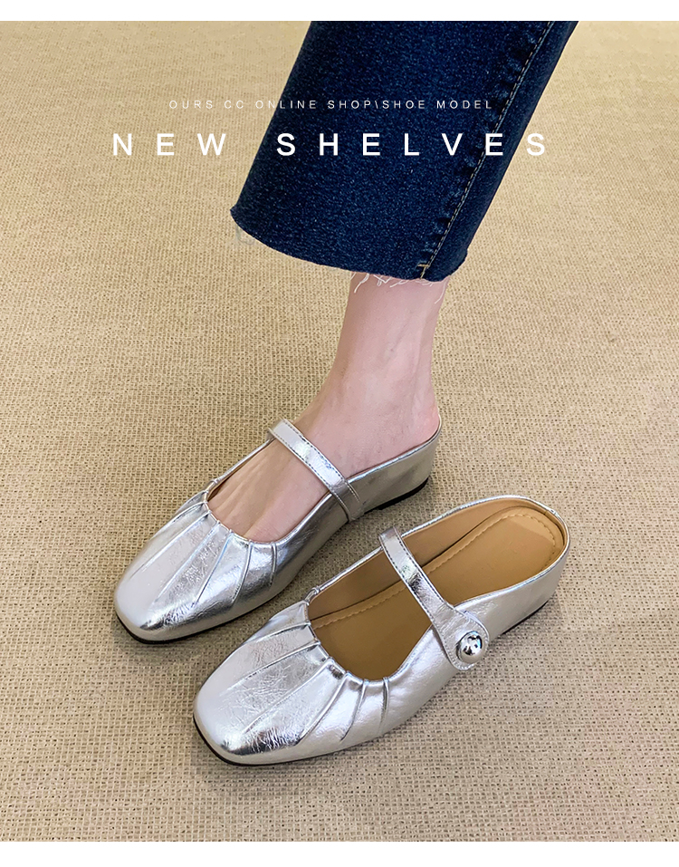 卷卷紫法式百搭一字带半拖鞋 舒适鞋面柔软细腻 隐形跟高 耐磨橡胶底 懒人一脚蹬 百搭显气质